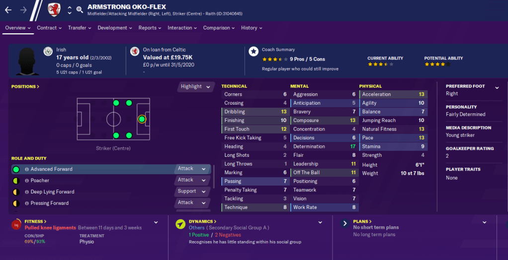 While all that was going on, I did manage to strengthen the side a little. Our partnership with Rangers helped as I loaned in left-winger Simon Brady as well as right-winger/striker Armstrong Oko-Flex from Celtic.
