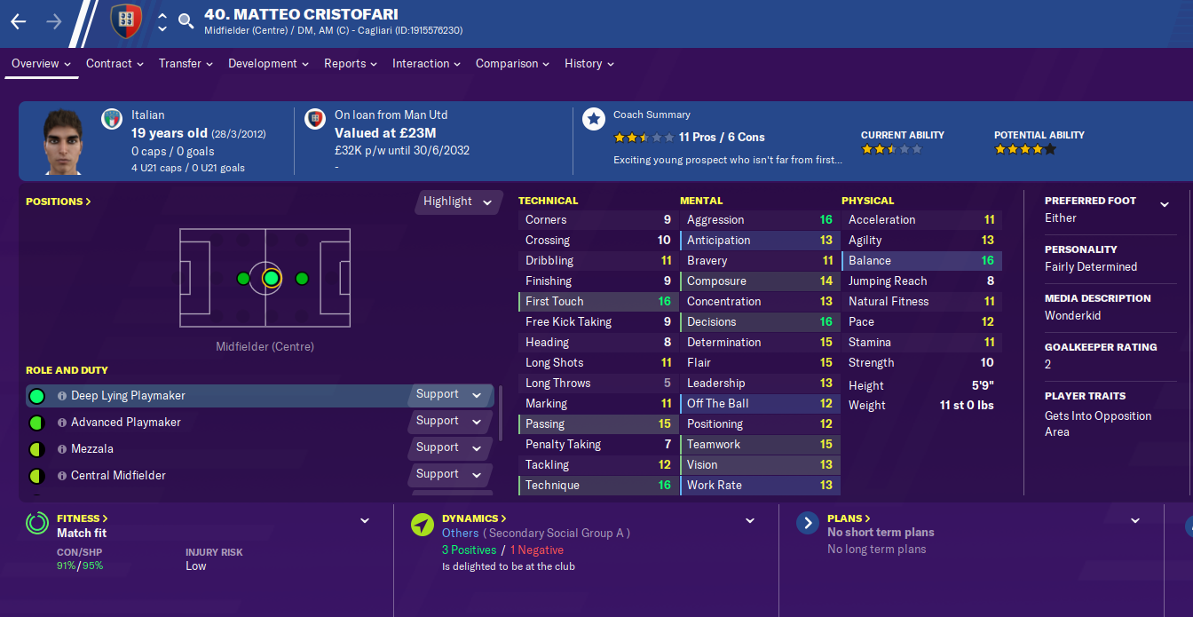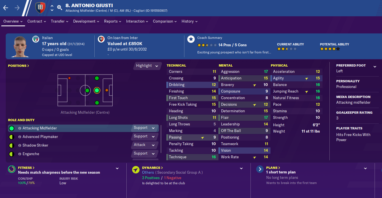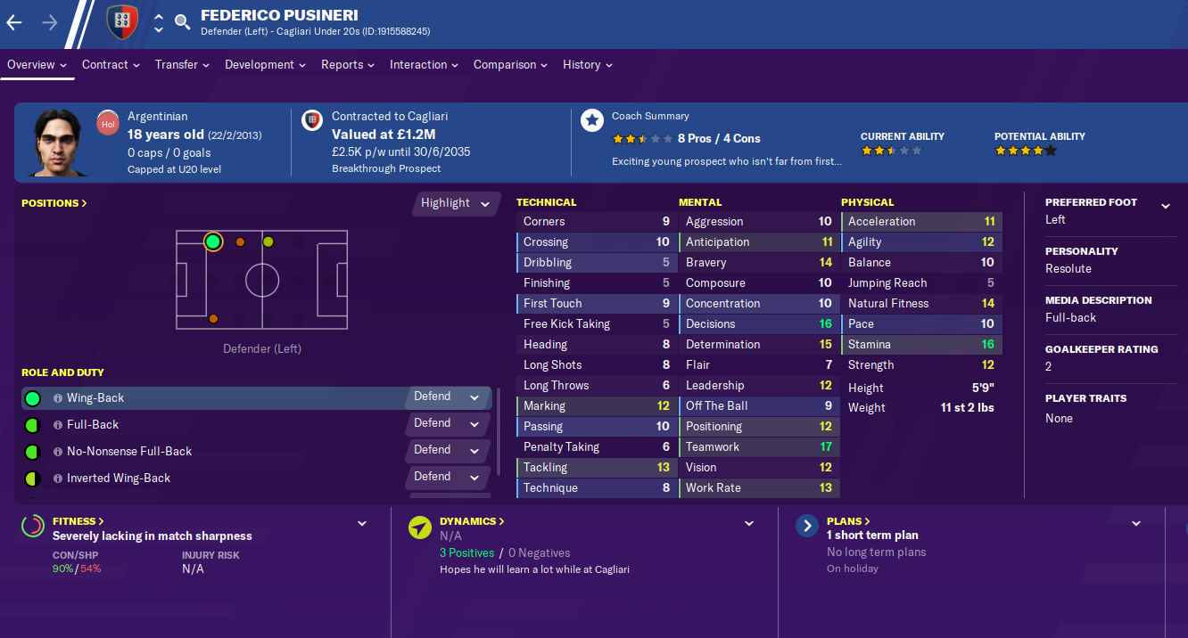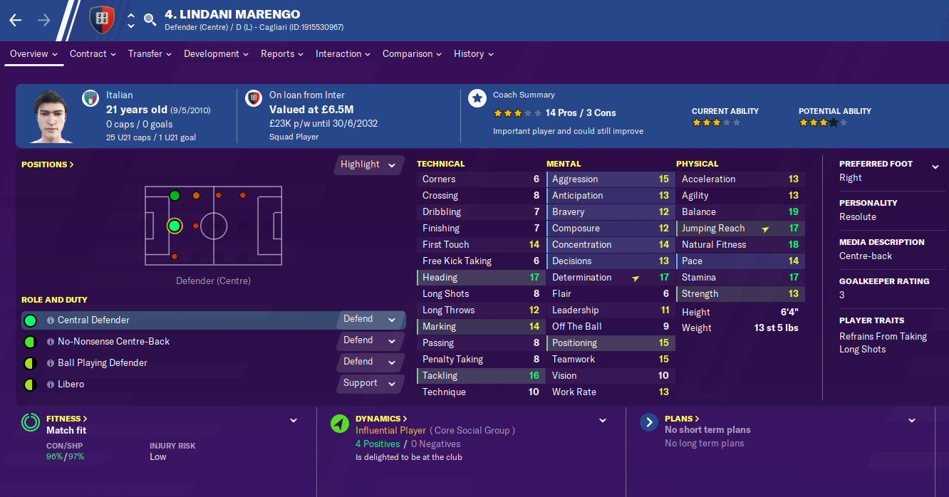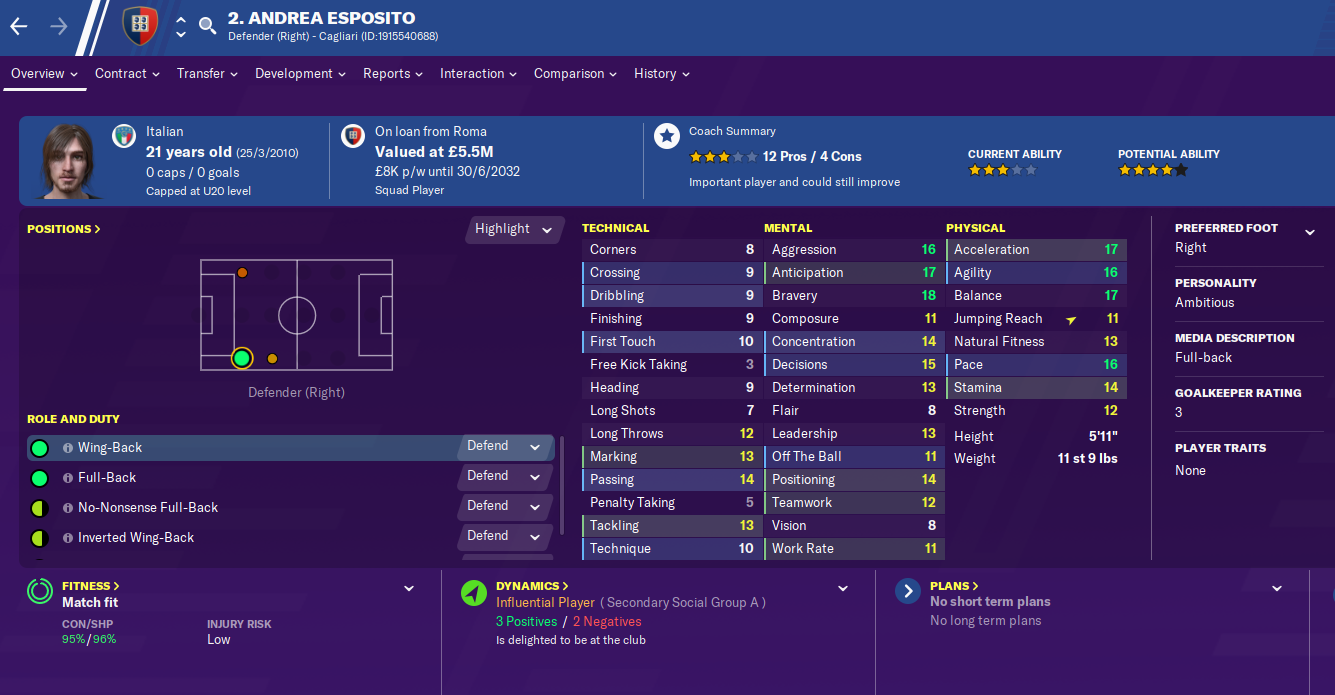 With a lack of finances available to bring players in I took advantage of Serie A’s lack of loan regulations to bolster our squad. First, we brought back last season’s Inter loanees midfielder William Zanella and centre-back Lindani Marengo, while we also brought in Inter midfielder Antonio Giusti.