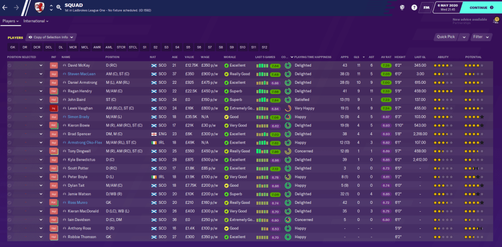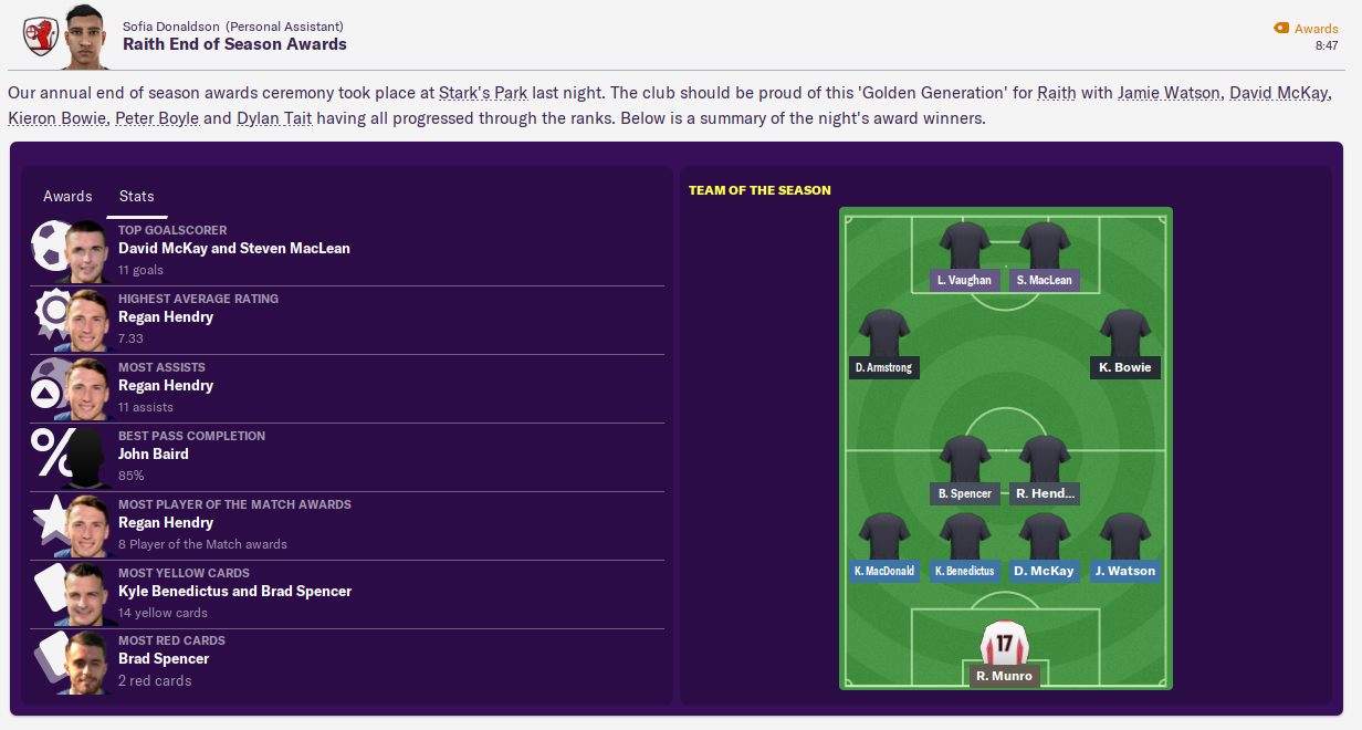 20-year-old goalkeeper Ross Munro set the second-most clean sheets with 15 and only conceded 27 in 35 matches, which led me to sign him up on a free after his Ross County contract expires.