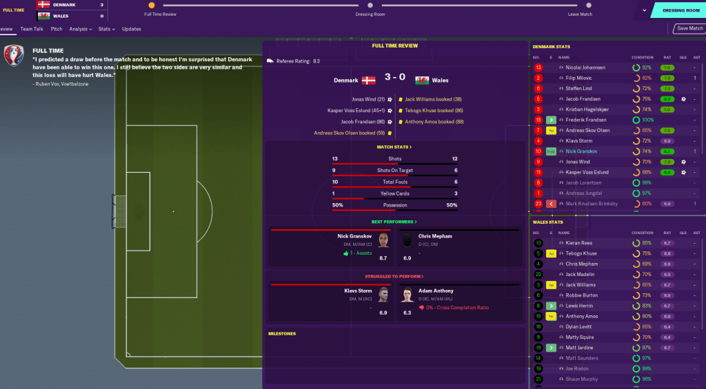 We began Euro 2032 with a tough game against Turkey, and it was looking like a really tough task as we went 1-0 down to a goal from Inter striker Buruk Aydin after 21 minutes. However, striker Jonas Wind struck a few minutes before half-time to get us level at the break.
