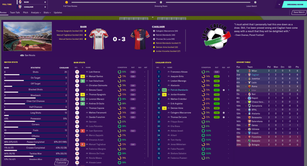 Join us next time to see how far we can take Cagliari in our second full season, and whether we’ll get the sack if we don’t meet the board’s expectation of Champions League qualification!