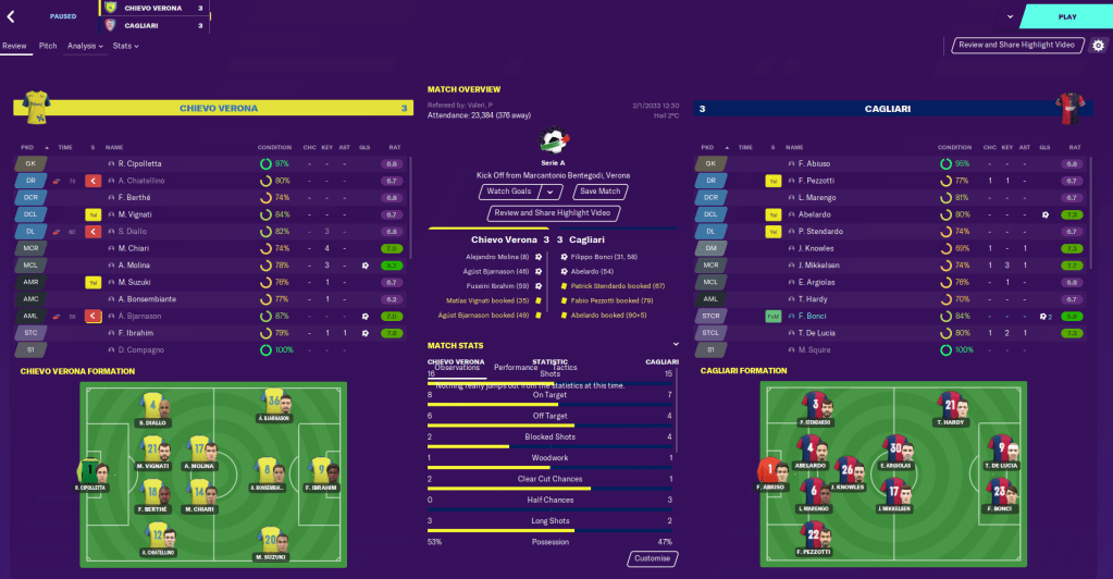 And we moved into 2033 by taking that streak of draws to 5 in a row as an absolute epic at Chievo Verona ended 3-3, with Bonci scoring a brace.