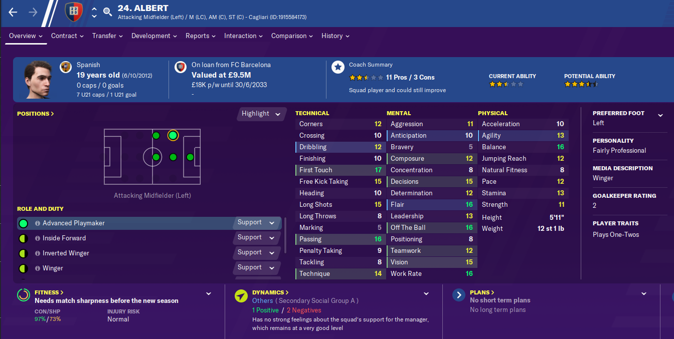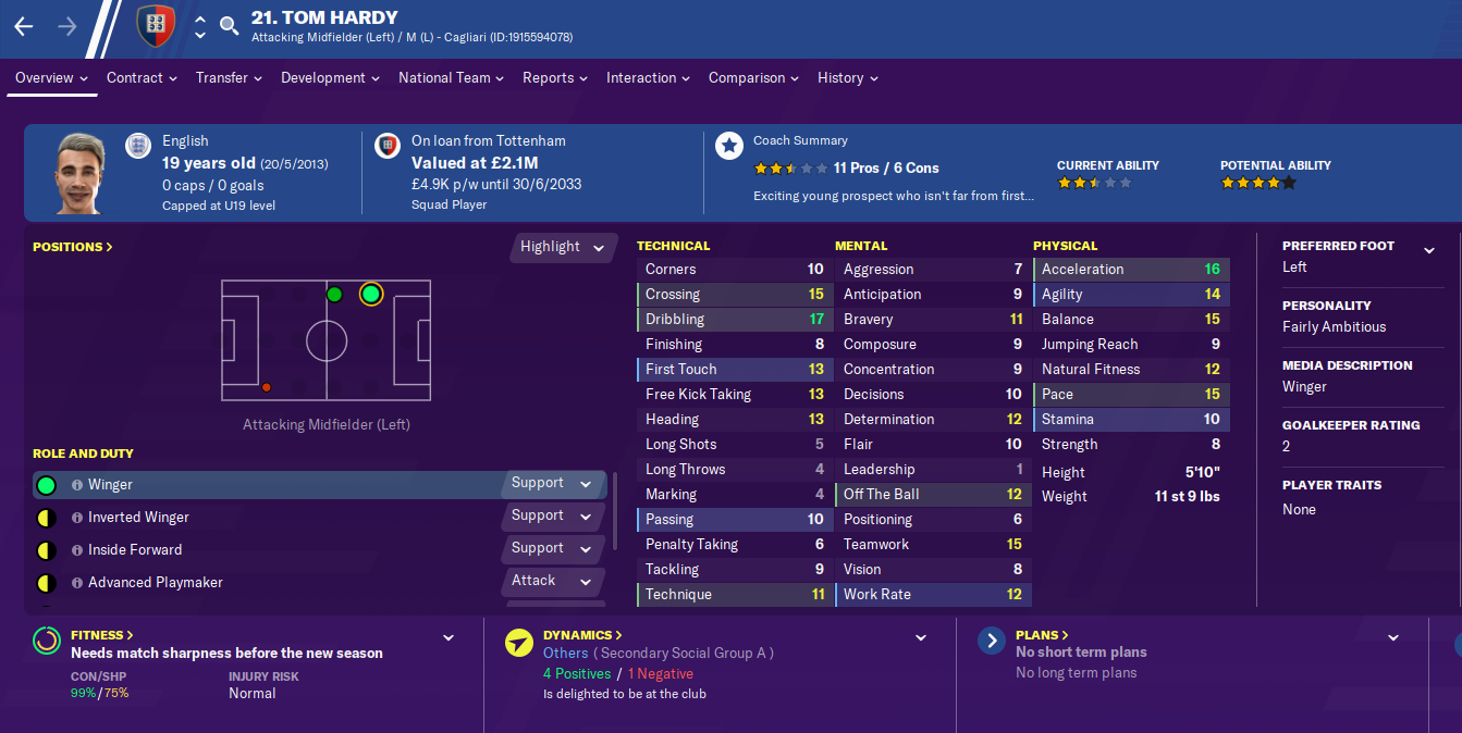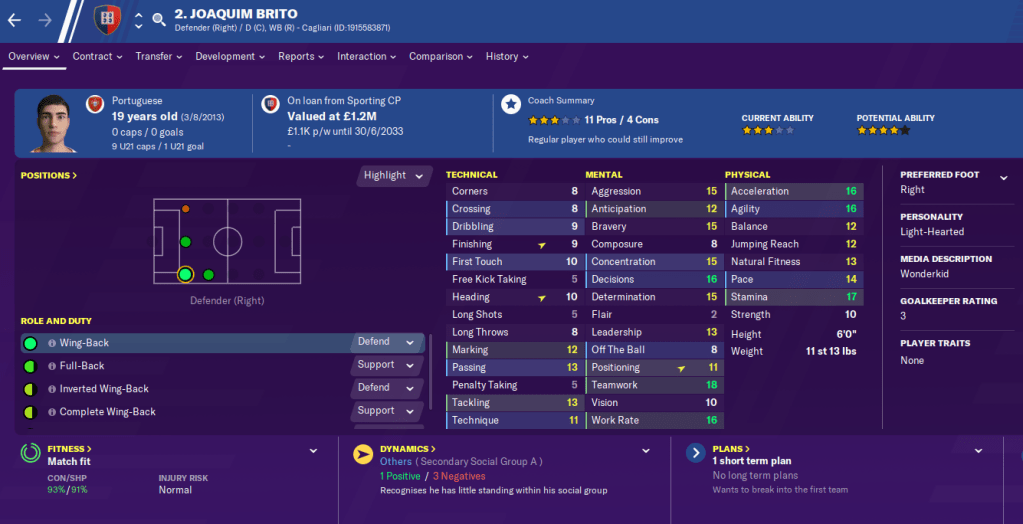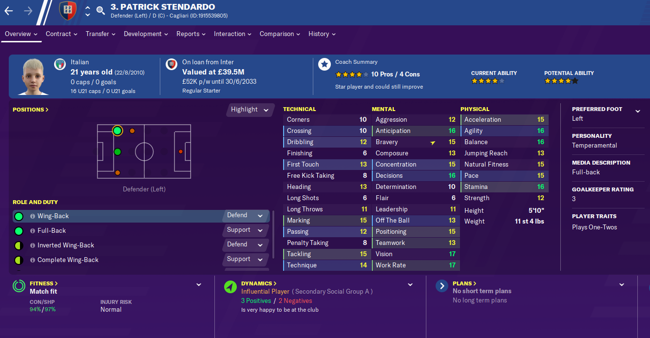 Given our lack of finances, I also dipped into the loan market to bolster the squad with Sporting right-back Joaquim Brito, Spurs left winger Tom Hardy, Man City striker Matty Squire, and Barcelona attacker Albert. But the most important loan signing may be Inter left back Patrick Stendardo.