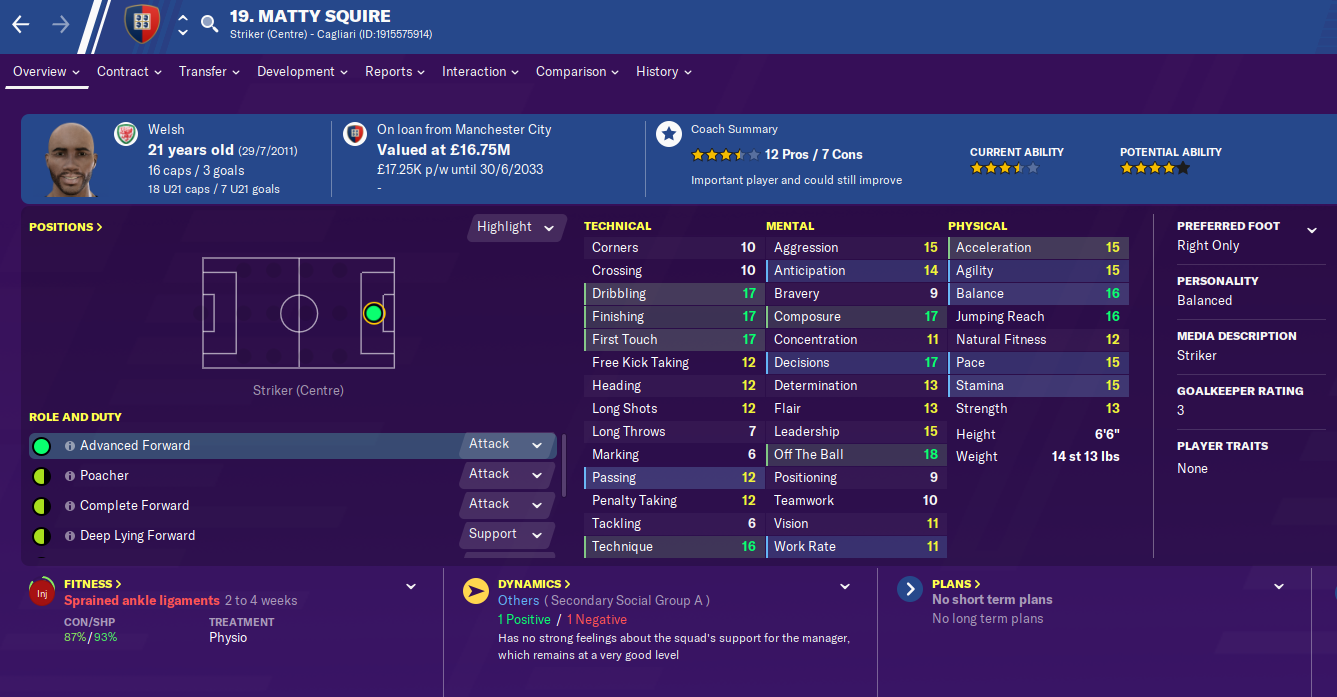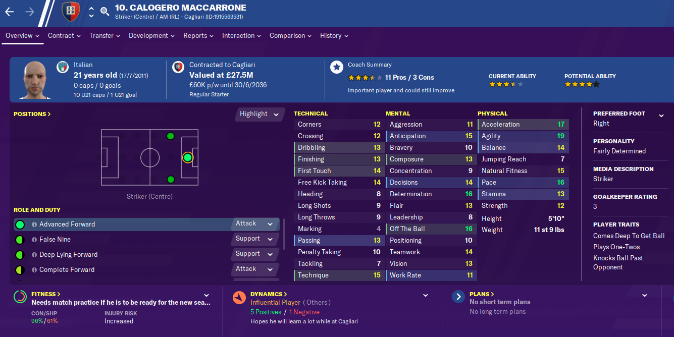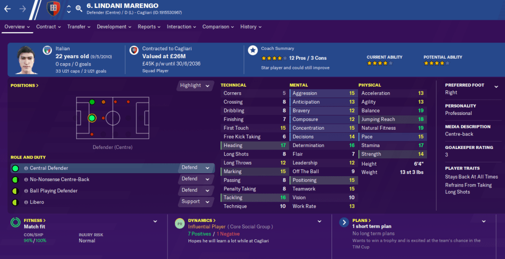 The biggest two signings were a centre defender and a goalkeeper. Lindani Marengo, who’d been on loan at Cagliari the last 2 seasons, joined from Inter for £11.25 million and Francesco Abiuso, who I’d been tracking for years, came in from Napoli for £10 million.