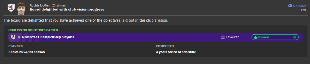 This achievement saw us pass our objective of reaching the playoffs 4 years early, and Chairman Robbie McGinn was well and truly chuffed.