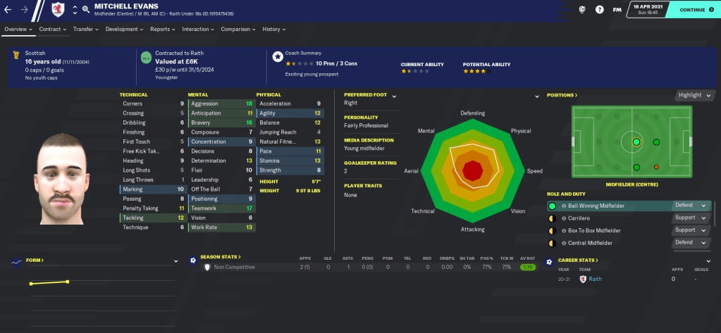 Our second youth intake delivered a few players wth potential first-team qality. The best prospect is central midfielder Mitchell Evans who I suspect could become a Premier League player, along with goalkeeper Mark Crawford and centre-back Dylan Millar.