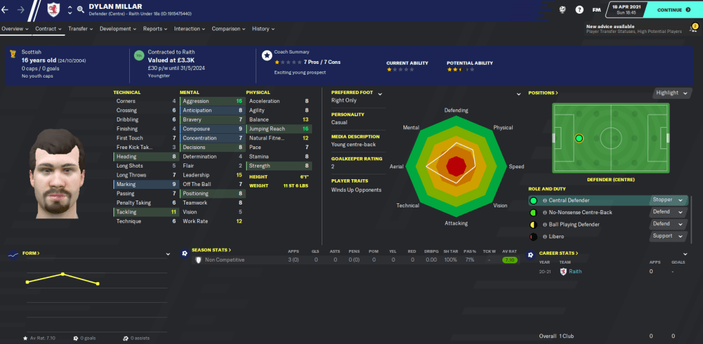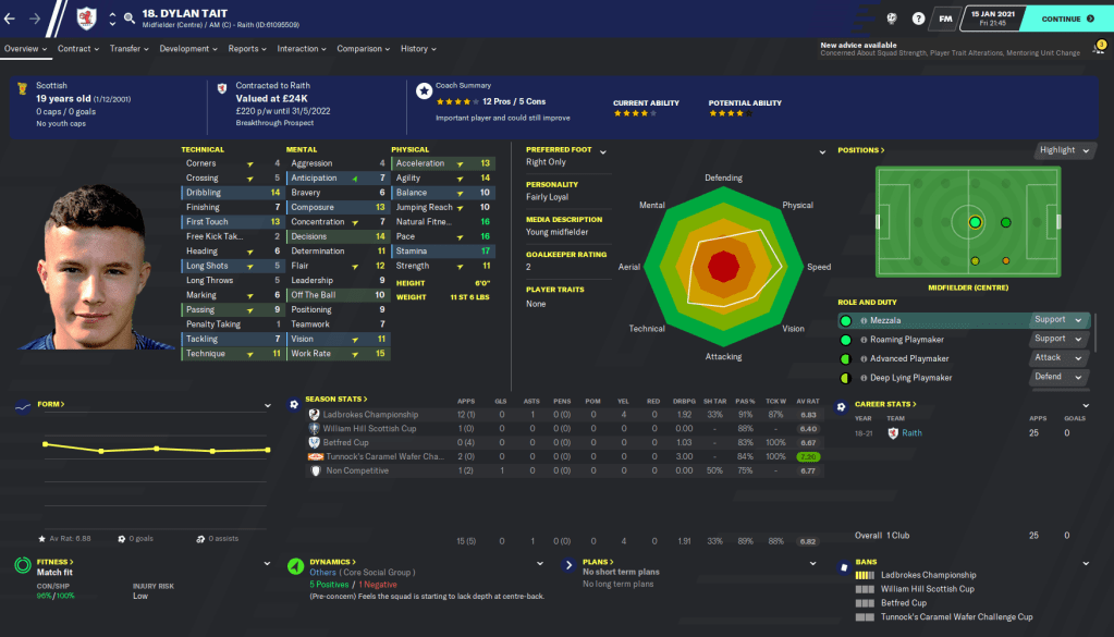 2021 began with a huge offer for our club captain Regan Hendry. Watford offered us £500k, so I negotiated hard and got them up to £2 million up-front plus £250k in add-ons. Hendry showed his importance to the side with a starring role in a 2-goal comeback to seal a 2-2 draw at Ross County. We will undoubtedly miss him but we cannot ignore that kind of money in our financial position.