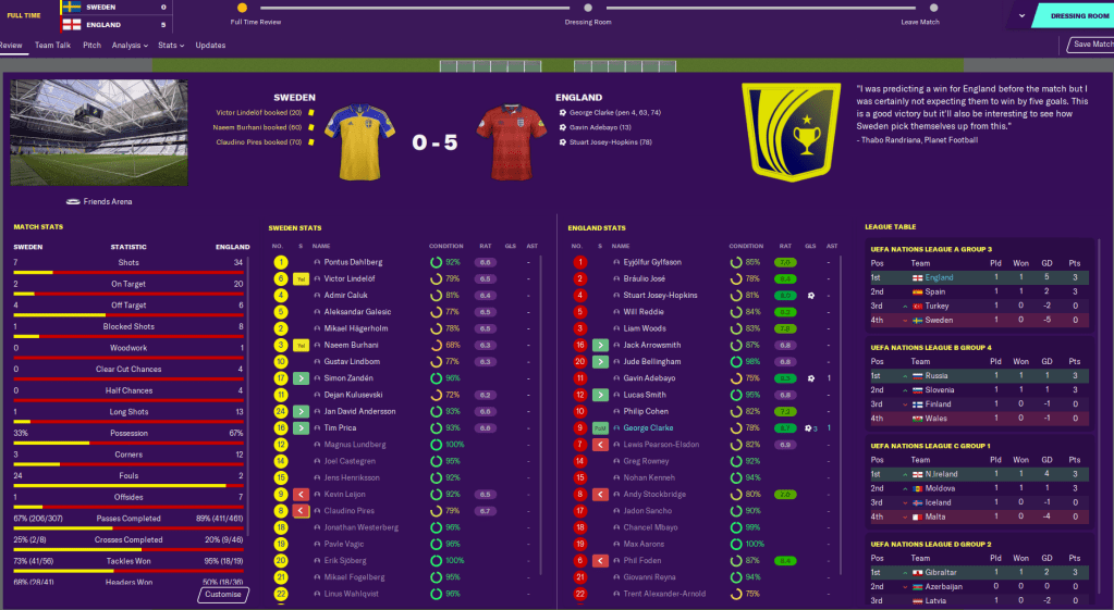 That worked very nicely as we spanked Sweden 5-0 away in my first match as England boss, with Clarke bagging a hat-trick that took him to 29 goals in 41 caps and Everton winger Gavin Adebayo scoring on his debut.