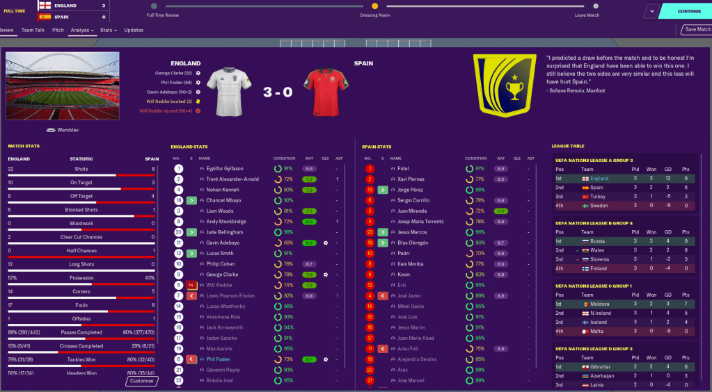 This England team showed just how good they are by thumping Spain 3-0 with Clarke scoring his 30th goal for his country, a Foden screamer and Adebayo put the seal on the win.