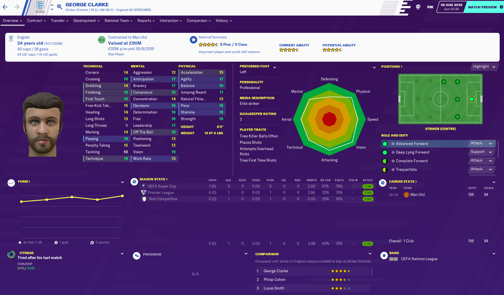 13 years in, the squad still contains 7 real players in Trent Alexander-Arnold, Max Aarons, Nohan Kenneh, Jadon Sancho, Jude Bellingham, Phil Foden and Giovanni Reyna. Another familiar name is, of course, former Sporting and Valencia striker Philip Cohen, who’s hopefully going to form a formidable strike partnership with Man United striker George Clarke.