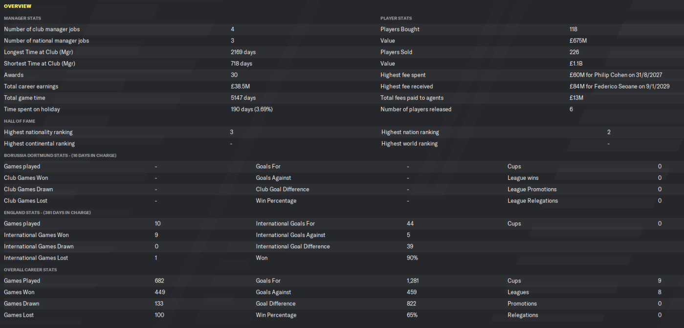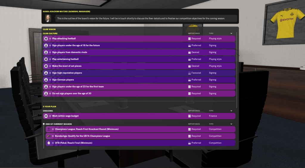 That may not sound too unreasonable, but Dortmund have only finished in the top three once in the last three seasons – having won the Bundesliga in 2029 and 2030. Bayern have won the title 9 times during this save, including the most recent season (2032/33), with Dortmund winning 4 and Leverkusen doing so in 2032.