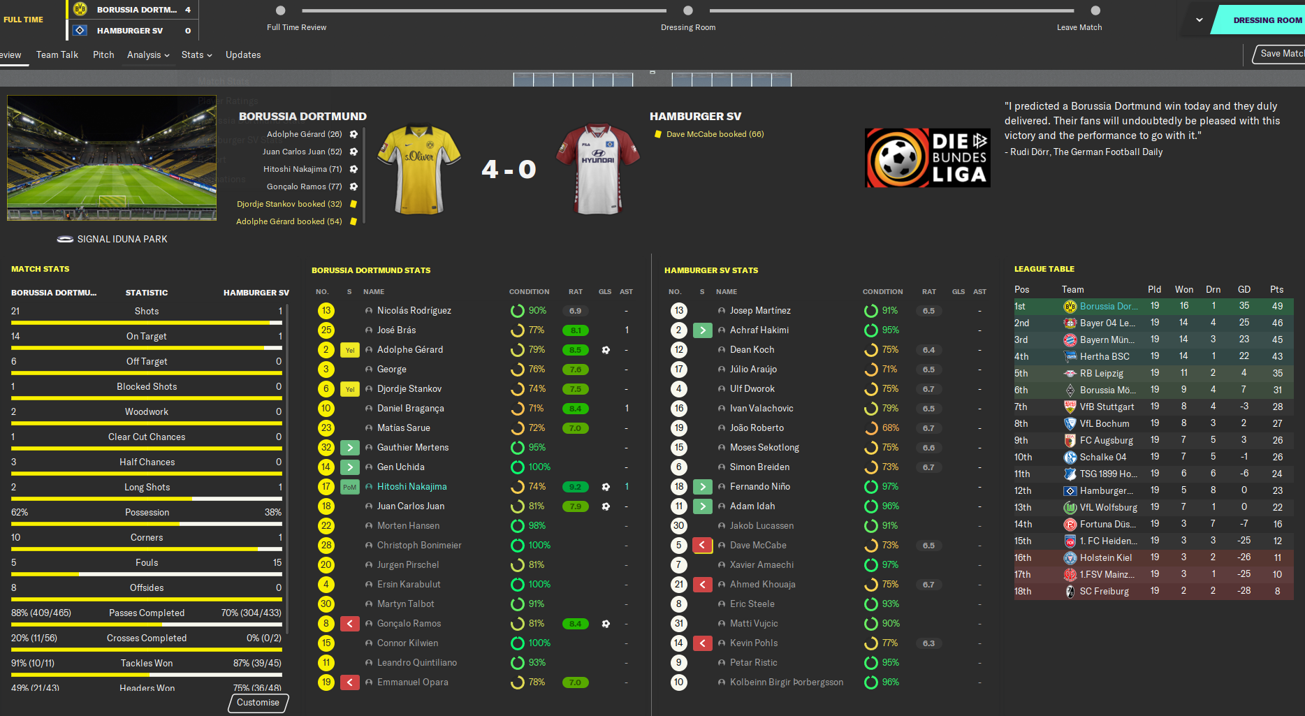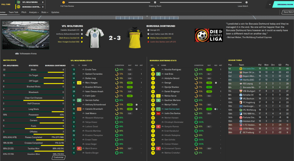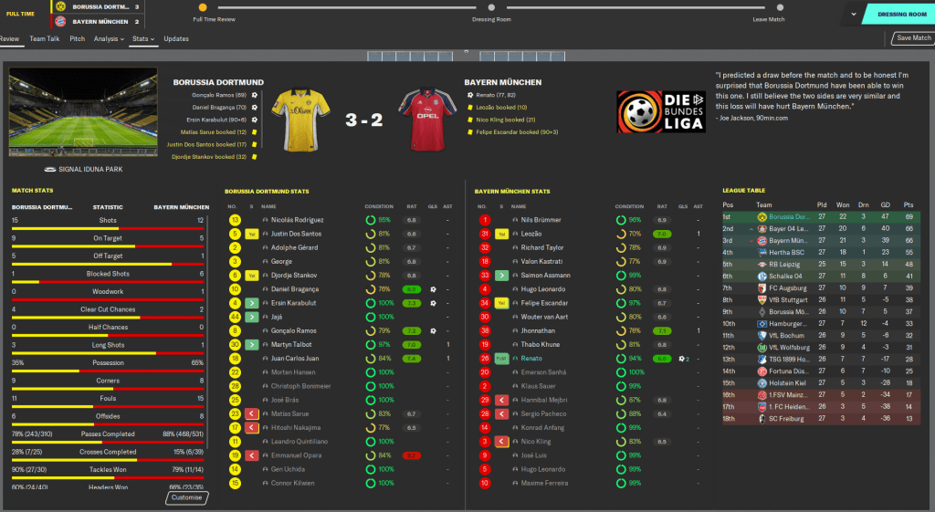 After 10 games in Germany, things were looking relatively positive. Borussia Dortmund sat 2nd in Bundesliga, just one point behind Bayern Munich, against whom we’d sealed a 0-0 away draw in the last game of the previous post.