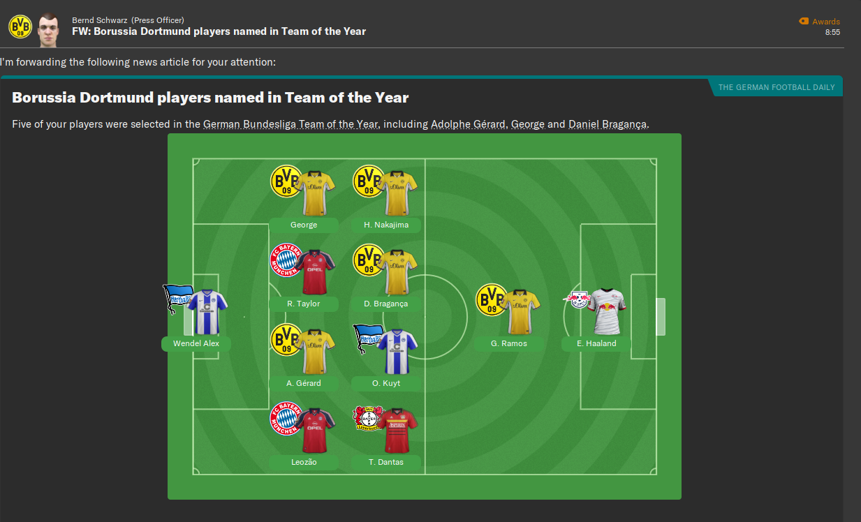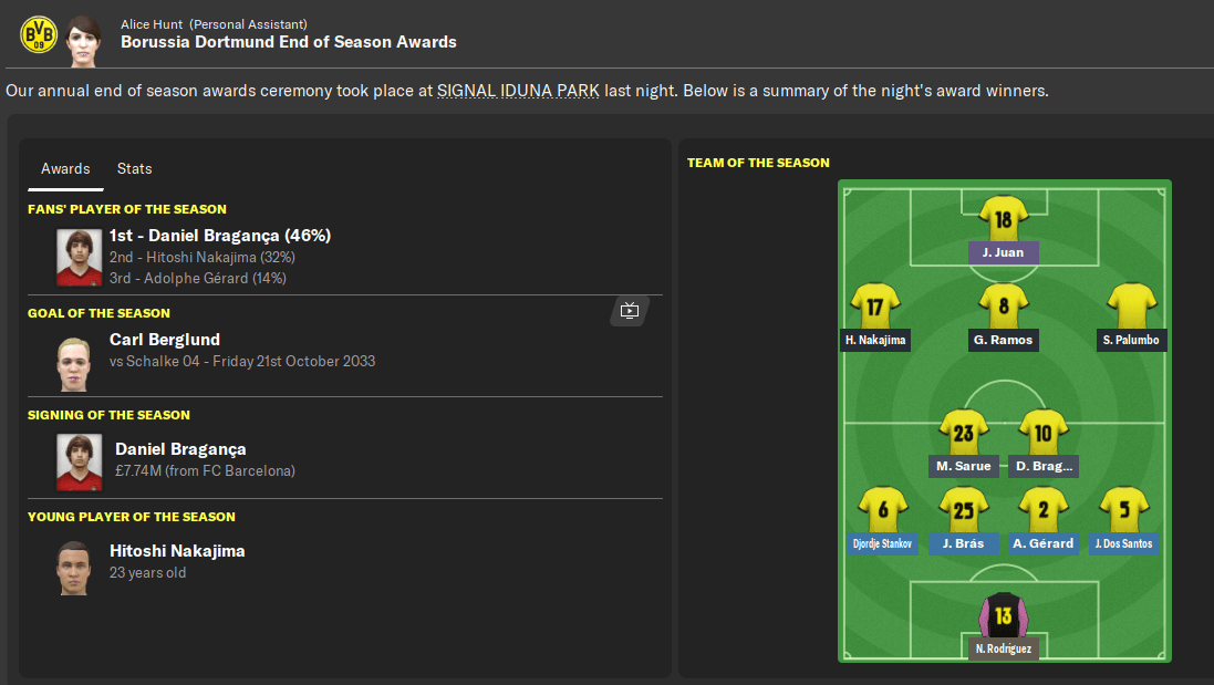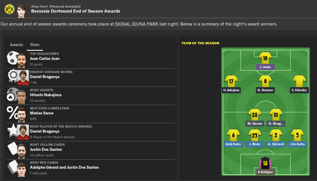 My first season with Borussia Dortmund had been an unmitigated success as I wrapped up my 9th domestic title with a third club. We eventually won Bundesliga by 12 points from Bayern Munich, winning our last 12 league games in the process.