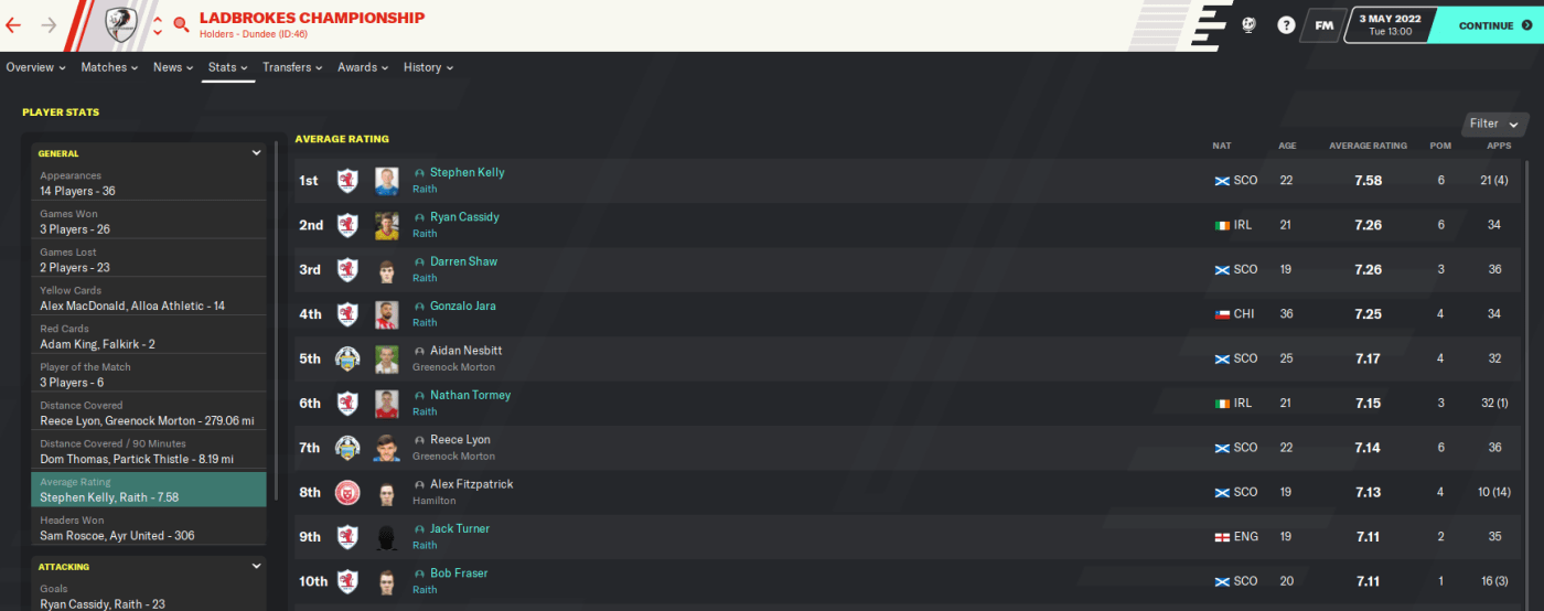 His young side had performed well beyond expectations and the club’s board were absolutely delighted with performances, giving their manager an A+ rating. Here we break down the key players that delivered this unexpected success and look at some of the stats from the Scottish Championship in 2021/22.