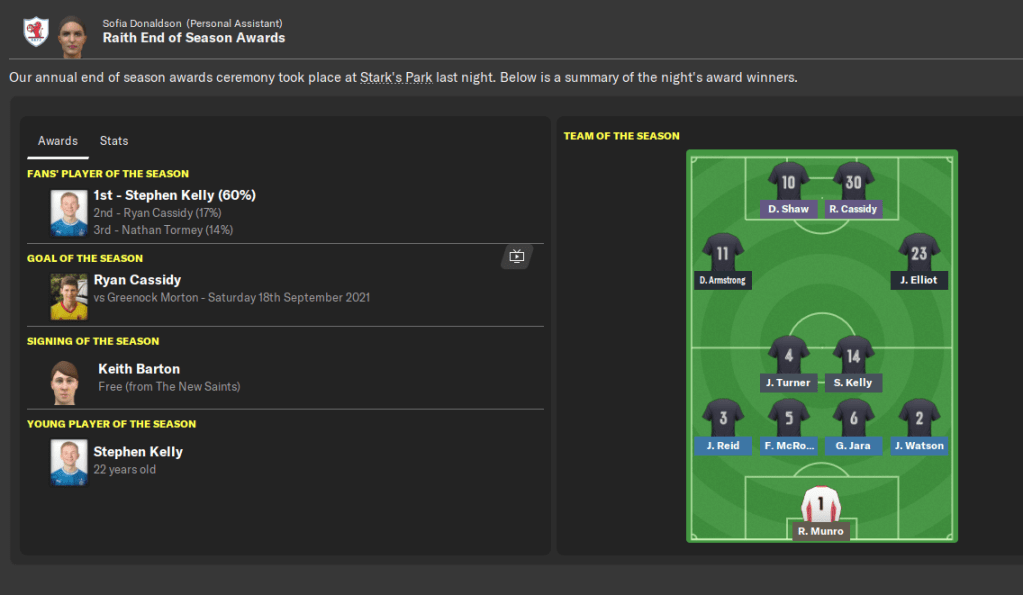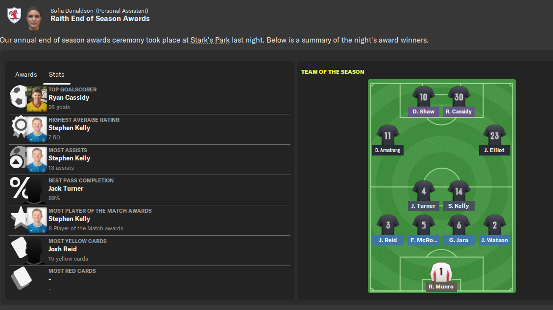Cassidy was named as Scottish Championship Player of the Year for his 23 goals and 5 assists in 34 matches. And 7 of our players were named in the league’s team of the year.