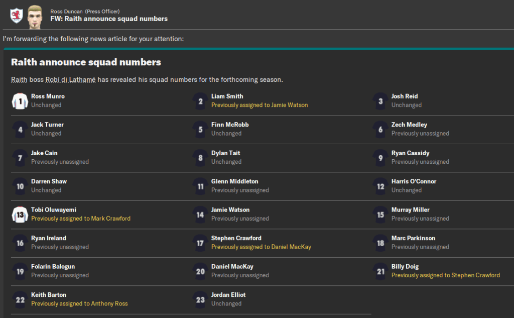 di Lathamé was relatively satisfied with his transfer efforts on a shoestring budget. The squad may not quite have the quality required for Scottish Premiership survival but it does contain plenty of potential. All that was left for him to do was to announce his squad numbers and get started with the Betfred Cup group stages.