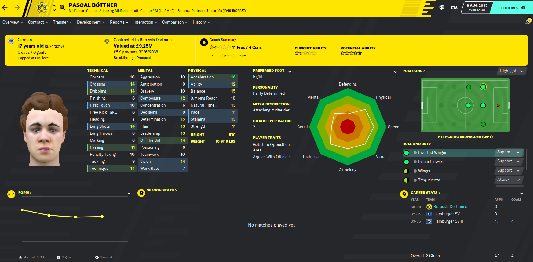 And we cast the net a little further to the future and met the board’s expectations for signing German players from our rivals with exciting wonderkids Pascal Bottner from Hamburg and winger Holm Berg from Leipzig then a bit of Brazilian flair in young striker Eduardo from Internacional.