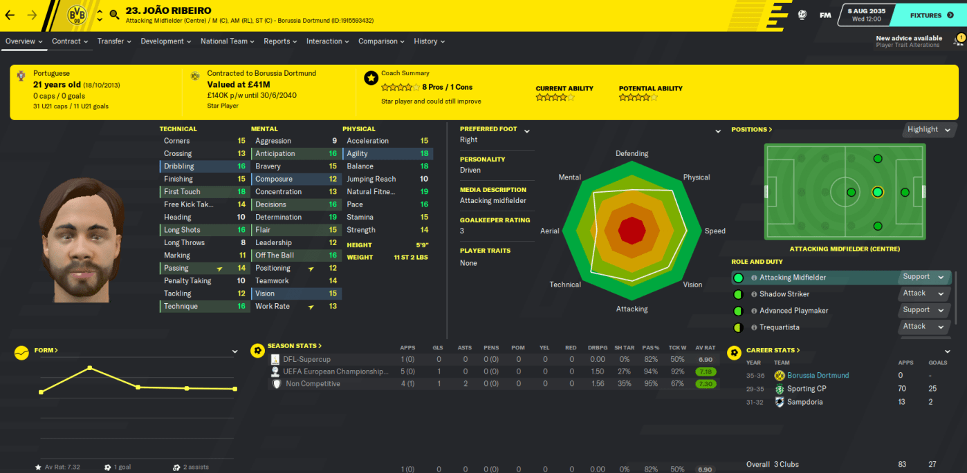 We’d lost a former Sporting player and Portuguese legend of the save in the summer, but we replaced him with a potential legend in the making in Joao Ribeiro, who comes in for £30 million from my former club Sporting. Then we strengthened at right-back by bringing in 20-year-old Frenchman Samy Franceschi for what is admittedly a lot of money at £35 million rising to £70 million from Southampton.