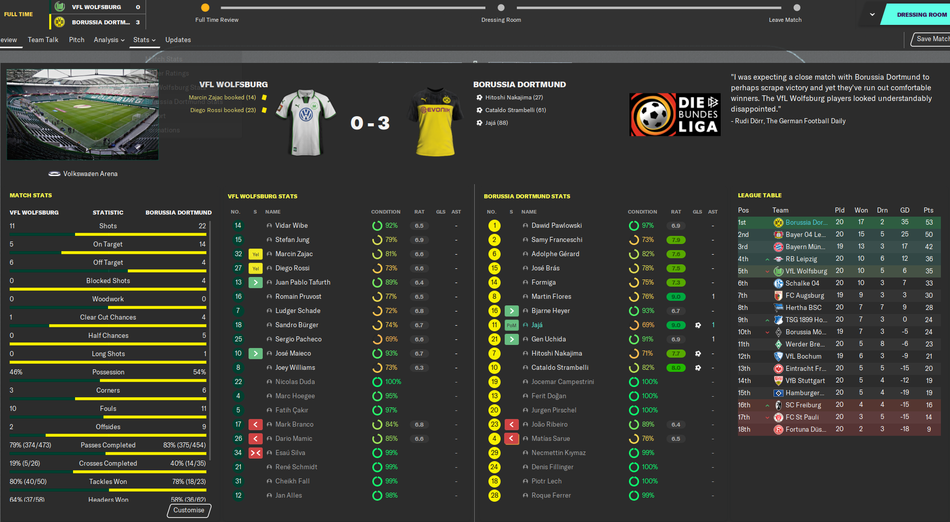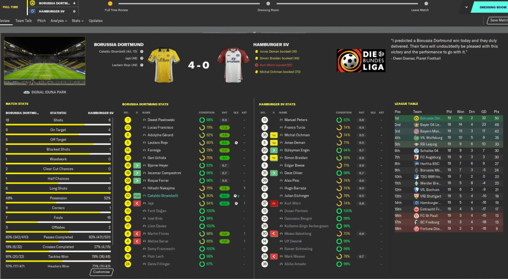 We then went to Freiburg and won 1-0, then another Strambelli brace led us to a convincing 4-0 win at home to Hamburg. And we backed that up with another dominant win at fourth-placed Wolfsburg, in which the main attacking trio of Hitoshi Nakajima, Strombelli and Jajá all scored.