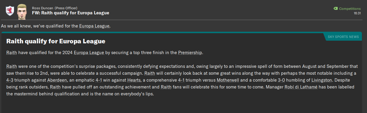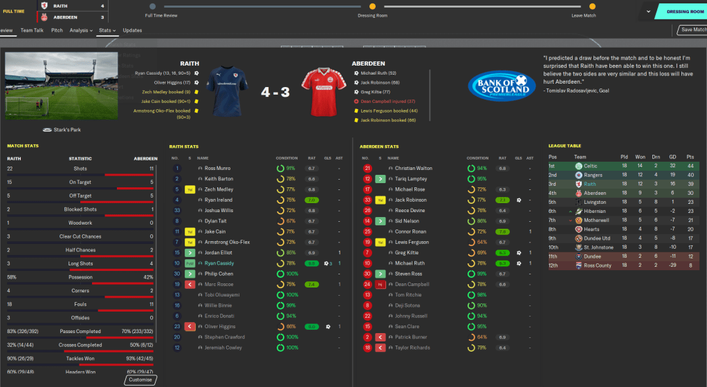 But that concludes a brilliant season in which we managed to finish third in the Scottish Premiership and score the third-most goals! And that means Europa League football next season. That’s despite having the lowest salary spend in the league – some 40-times less than what Celtic spend on wages – and only spending £500,000 on transfers, for players that hardly figured this season. Phenomenal stuff!
