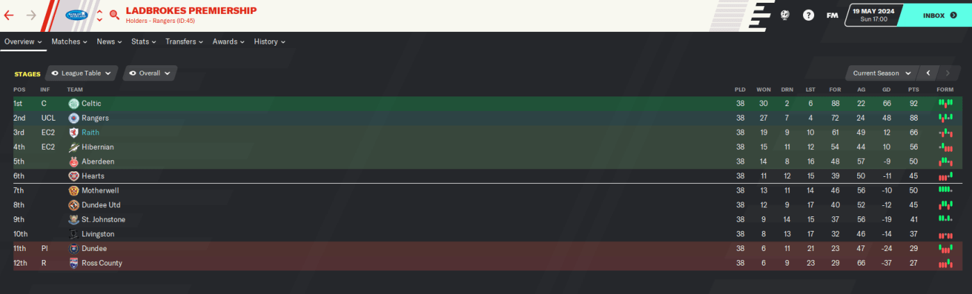 To summarize the ridiculous over-achievement, Raith still go into every match as underdogs and most of the squad are assessed as ‘leading Championship players.’ Yet they managed to finish third in the Premiership!