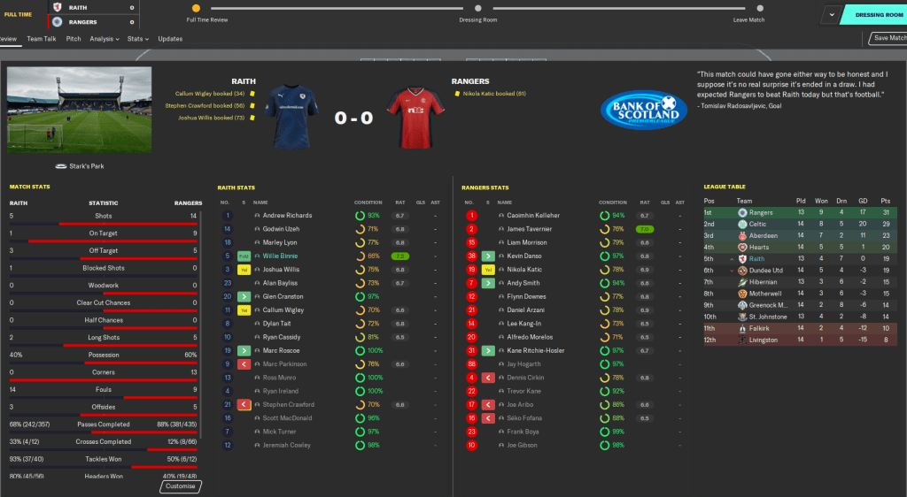 That was followed by three consecutive home draws beginning with a dire 0-0 against Livingston, then 1-1 against St Johnstone and Hibernian as the league campaign got off to a slightly shaky start. Then more draws came at home to Hearts, who’d begun the season well, before we went to Celtic Park and held firm to claim a 0-0 and only our second point against the Old Firm!