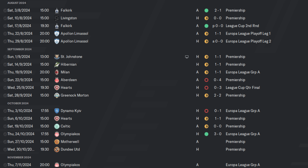 The win over Olympiakos was followed by a 2-1 defeat in Greece. Then we welcomed AC Milan to town and put another hugely credible display with a 0-0 draw, despite being well and truly dominated. However, that did bring our campaign to an end as we couldn’t catch Kyiv.