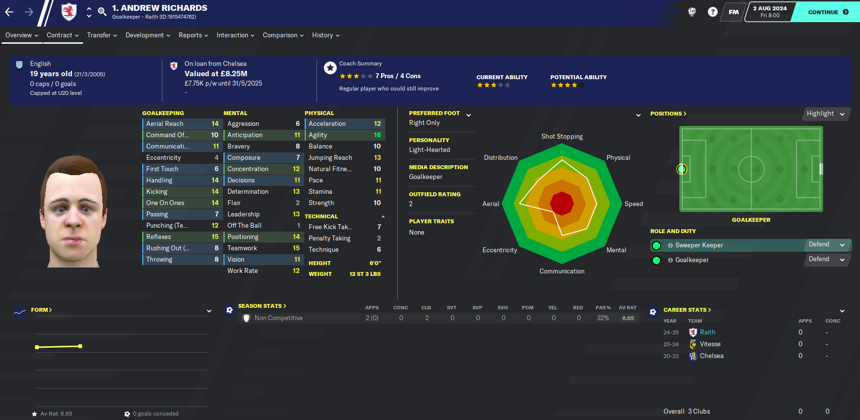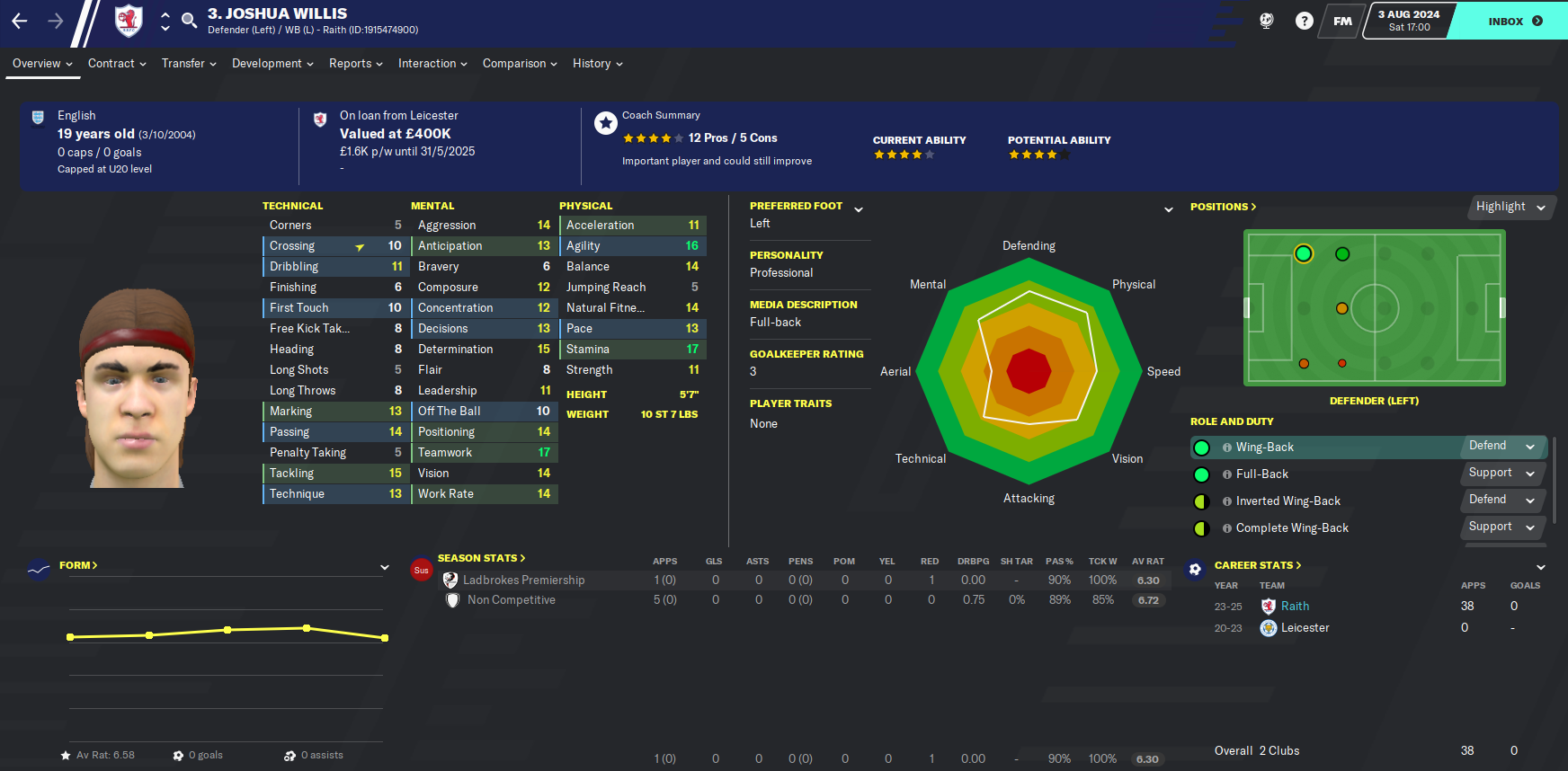 The summer of 2024 was, as a result, relatively quiet. We sold off a few backup players for a total income of just £60,000, and brought in a host of loanees.