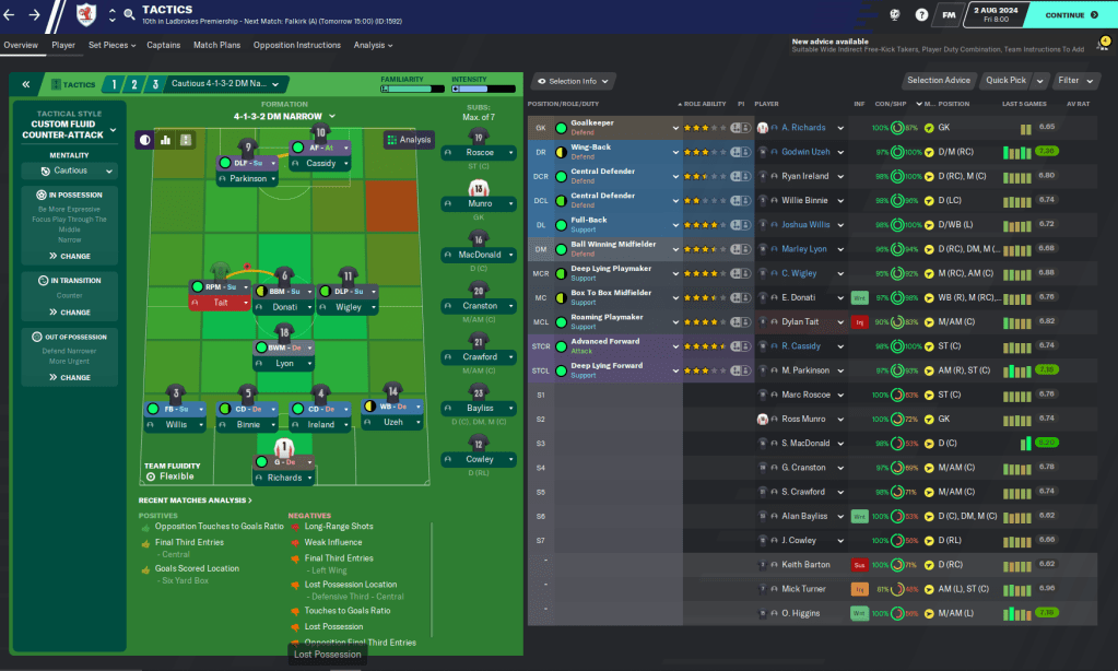 We backed that up with another 1-0 home win, this time over bottom of the league Falkirk as striker Parkinson ended an incredible 28-match goal drought! During the game, Frank Lampard was spotted scouting Enrico Donati for Chelsea. The upturn in form continued as we went to next-to-bottom of the league Livingston and won 2-0. Centre-back Binnie stepped up to convert a penalty then Cassidy added a second to make it comfortable.