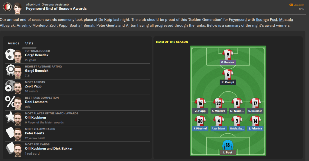 Our Feyenoord side dominated the Dutch league and bagged the Dutch Cup just for good measure. It was a great season that’s seen the Feyenoord board dishing out an A+ review. Cheers lads.
