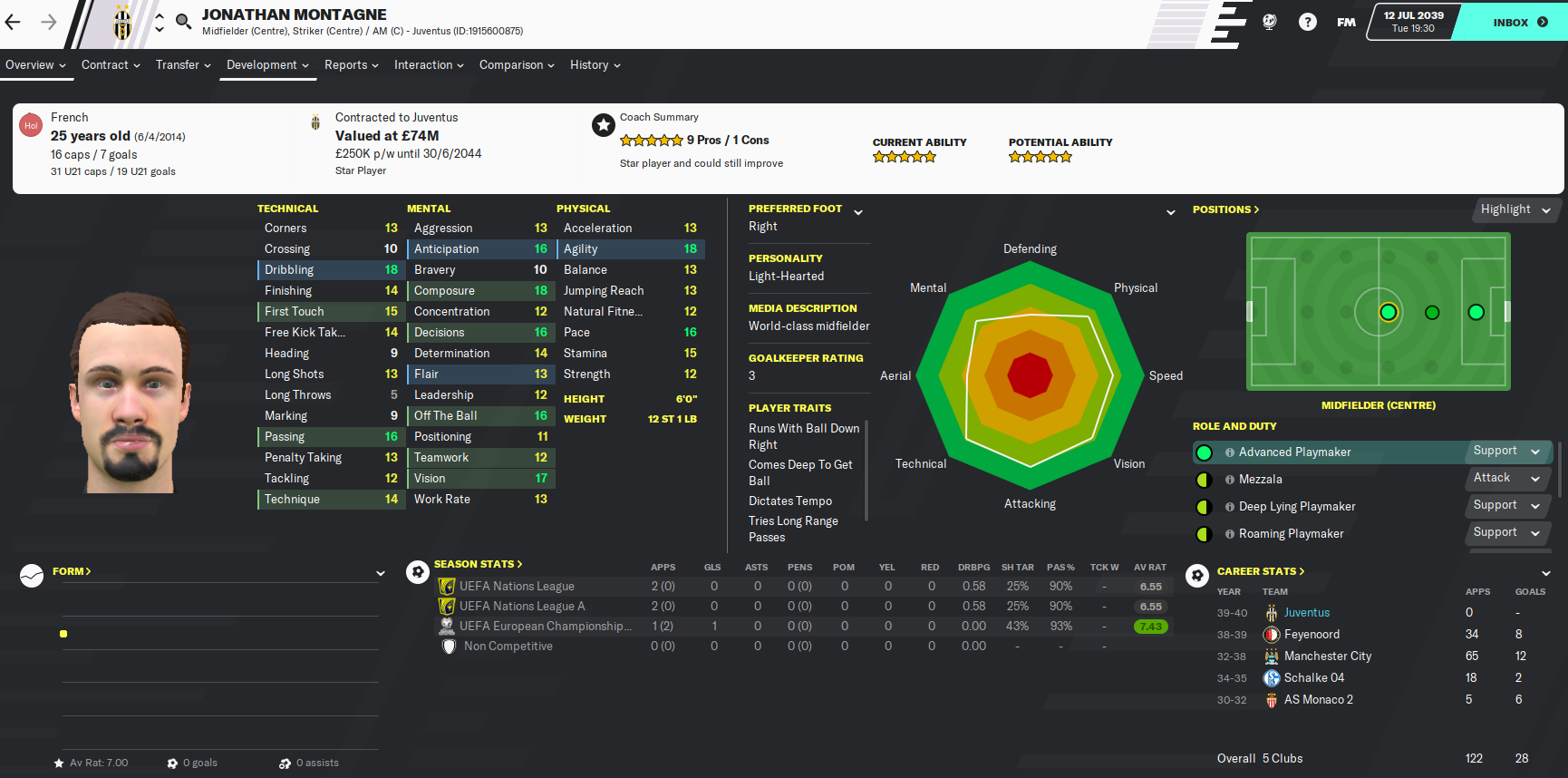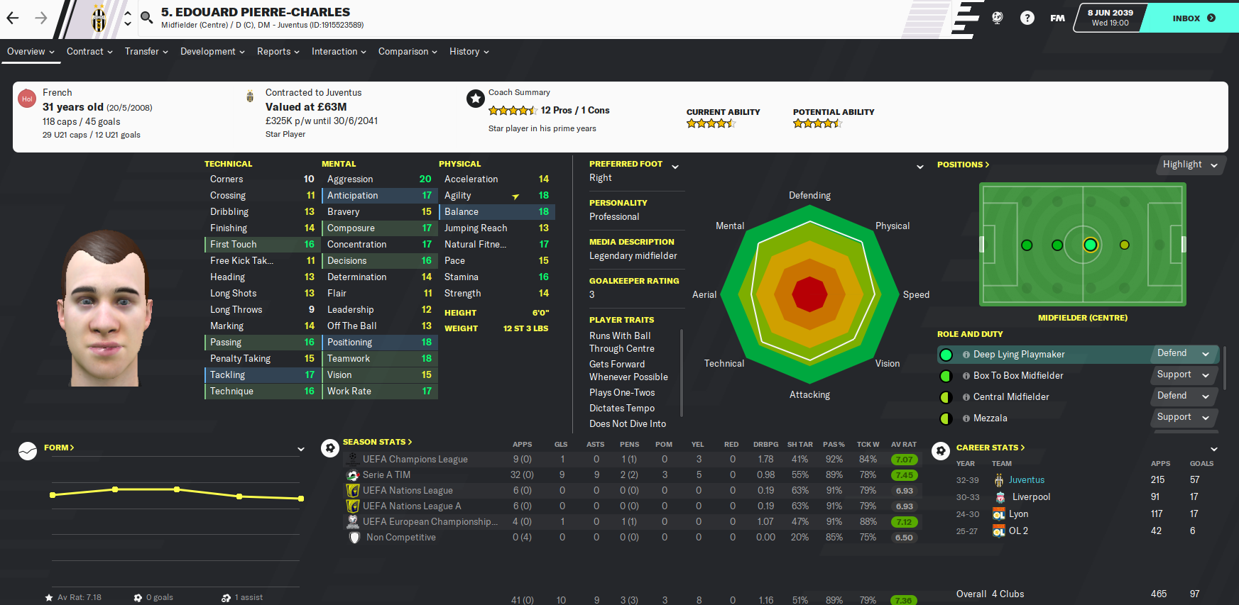 Another is French midfielder Edouard Pierre-Charles, who I’ve been aware of since he came through at Lyon but could never afford him for teams I was managing. Now 31, he’s considered a legendary midfielder.