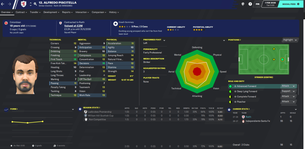 2028 began with ‘smashing’ our transfer record by signing 18-year-old Colombian striker Alfredo Piscitella for £1.5 million. He was joined by fellow 18-year-old Colombian centre-back Iván Restrepo.