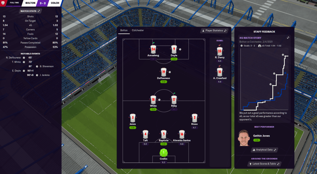 However, our form seemed to be highly reliant on the goals of Eoin Doyle, who already had 21. And we were conceding way too many easy goals to teams’ first shots of matches. I suspect this is because our goalkeepers are absolutely awful, or I just don’t know how to use a three at the back tactic properly. Or, a bit of both!