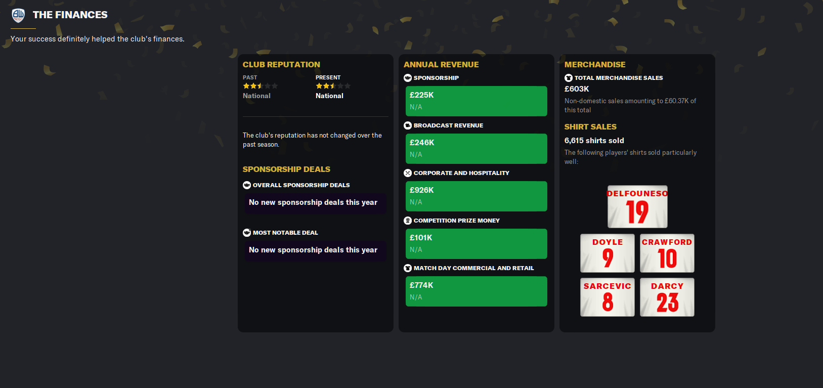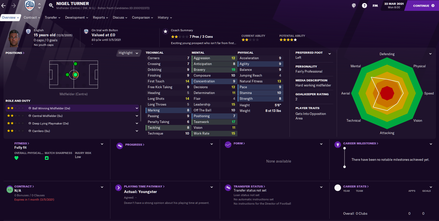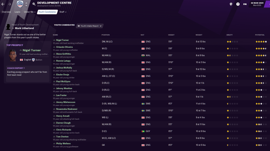 More good news was incoming as we got our youth intake, which included three players with 4.5 or 5-star potential. The pick of them is midfielder Nigel Turner, who’s not far off the first-team aged just 15.