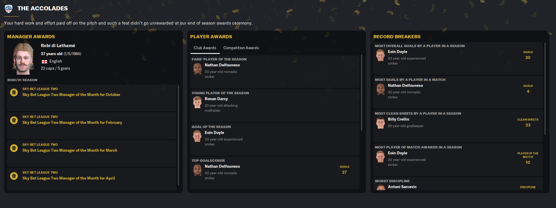 Delfouneso won fans’ player of the season, Doyle got goal of the season for a strike against Boreham Wood and Darcy won young player of the season.
