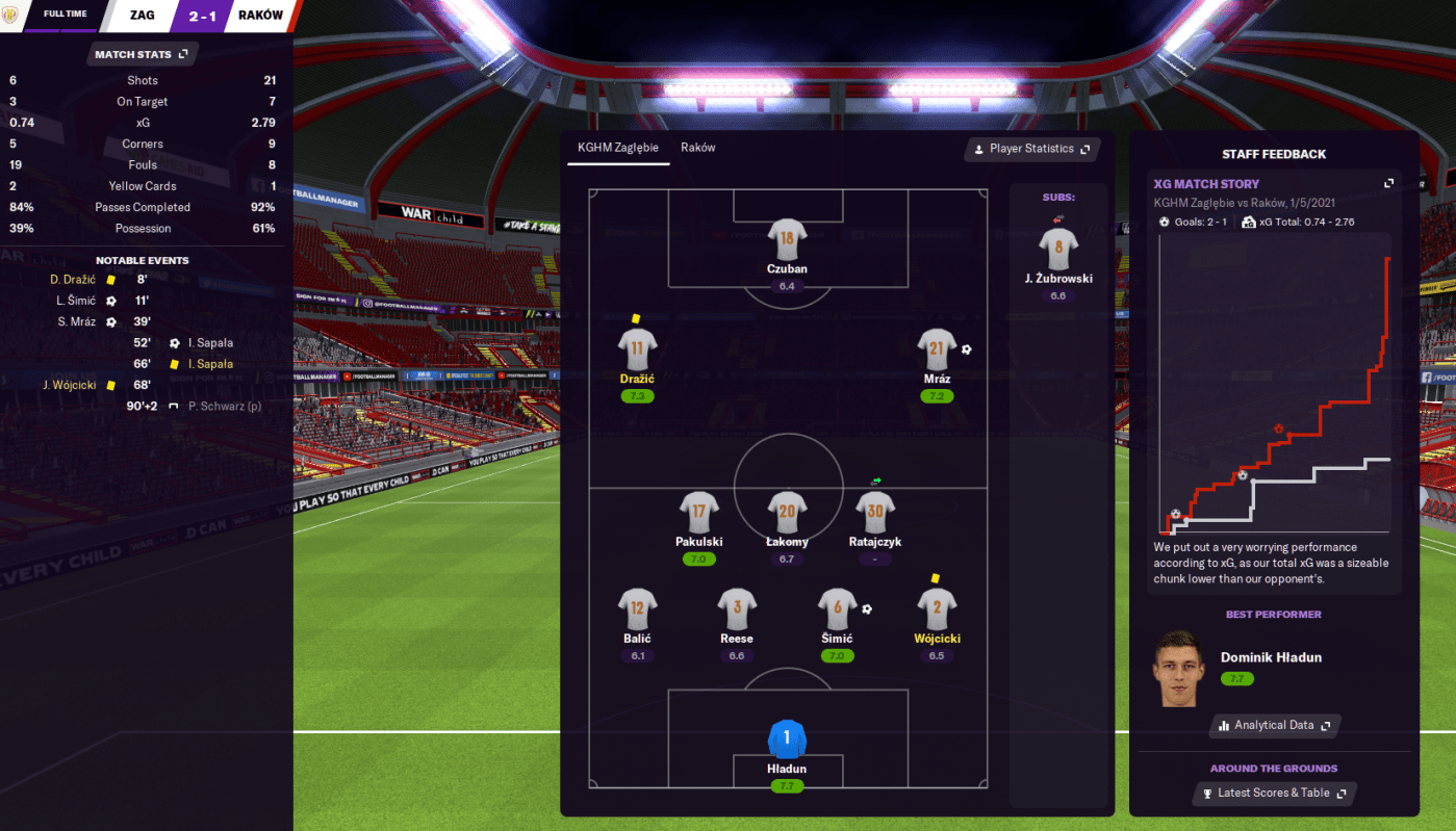 A depleted squad began 2021 with an absolute borefest 0-0 at home to mid-table side Wisla Plock then a 3-0 hammering at Lech Poznan, in which Zaglebie mustered just three shots and zero on target. That took the fledgling manager to six games without a win and his first real period of pressure.