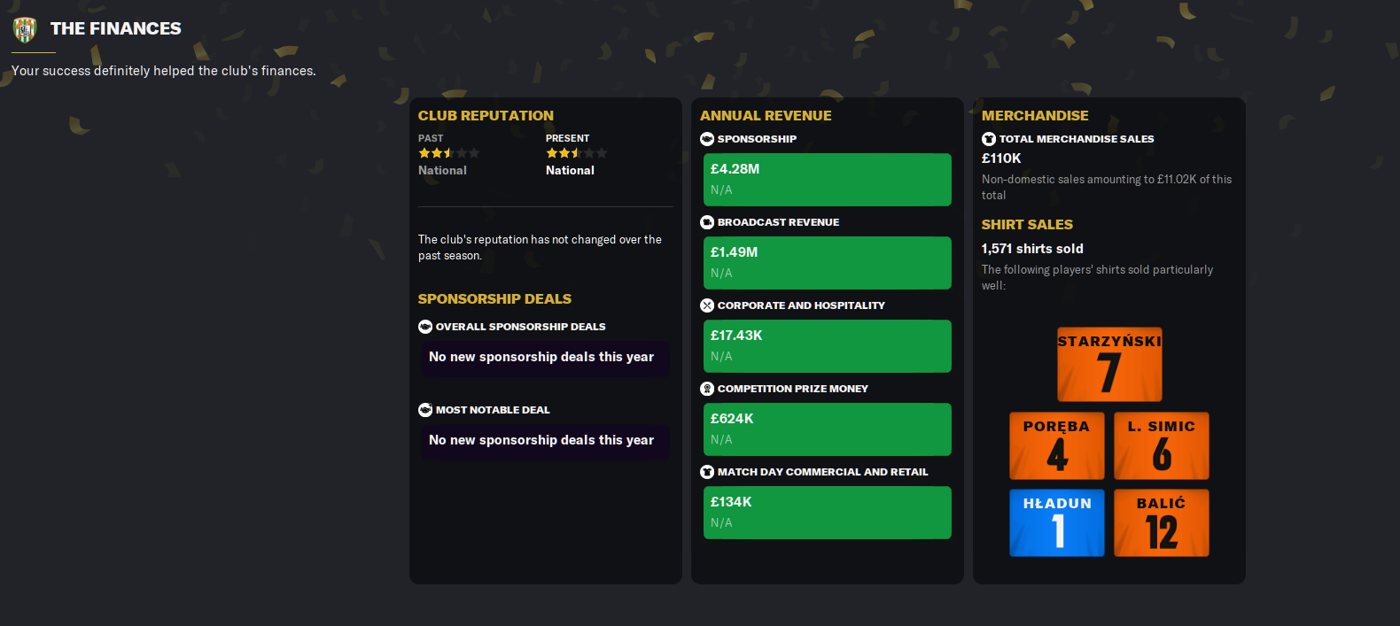 That wrapped up season one in Eastern Europe. However, there was a twist as Legia Warszawa sacked their manager after a poor campaign… and immediately began eyeing up Vladimir Latunov as his replacement! They offered an interview, it went really well and then they officially offered Latunov the job.