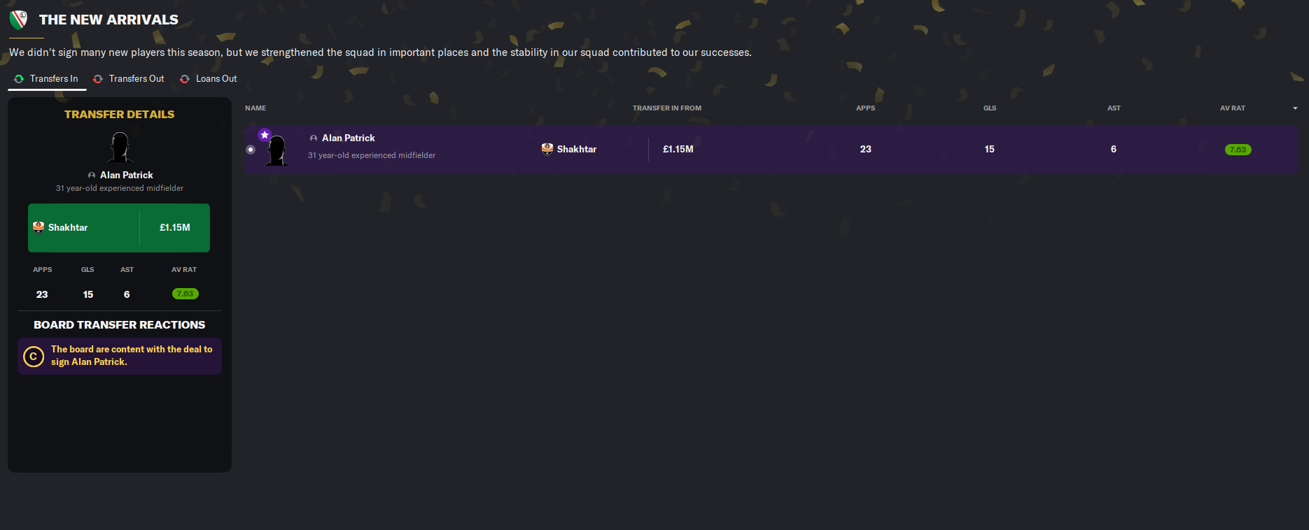 The winter layoff also gave Latunov a chance to wrap up his Continental B Licence, which bumped his reputation up to 2.5 stars. While the opening of the transfer window saw a flurry of pathetic bids for exciting young winger Radoslaw Cielemecki from Dortmund, Porto and Inter, which were all flatly rejected.