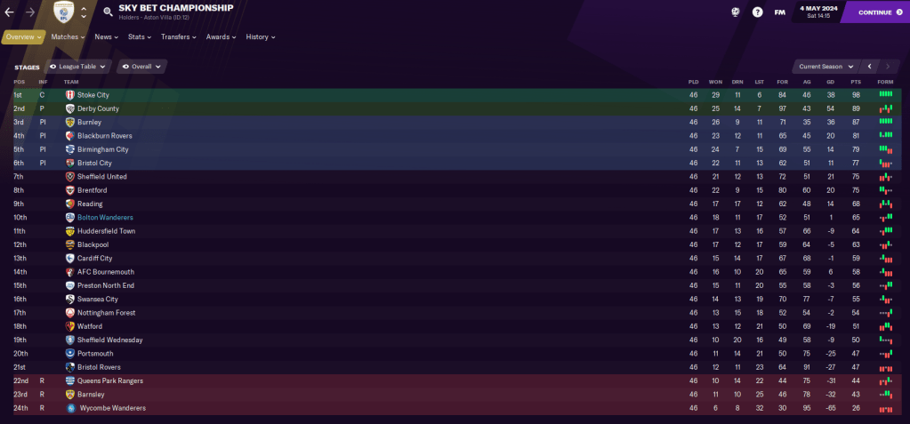 That sent us into the 2034 in the Championship playoff places and just three points off the promotion places! Absolutely crazy! However, let’s be very clear that promotion is nowhere near realistic, we’re nowhere near ready for it, and we don’t have the squad or quality required to get near the playoffs.