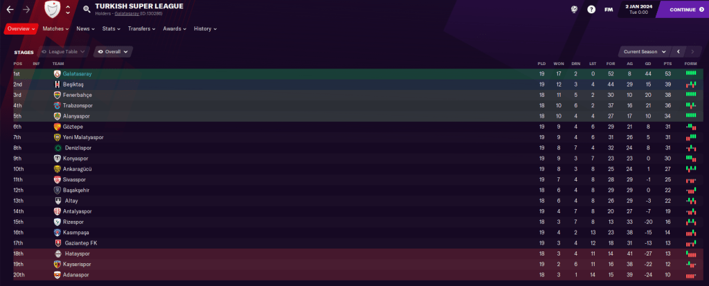 Three of the trickiest games of the season followed, beginning with two Istanbul derbies in early December. Ferreyra came off the bench to nick a 1-1 draw in a pretty drab game at sixth-placed Fenerbahce before travelling to second-placed Besiktas. Marin Petkov, playing from the right, put Galatasaray ahead with an absolute screamer after half an hour and Besiktas offered nothing until academy product right-back Ali Bozdag got sent off on 82 minutes for one of the worst tackles you’ll ever see! But Latunov went super defensive and held on for a huge 1-0 win.