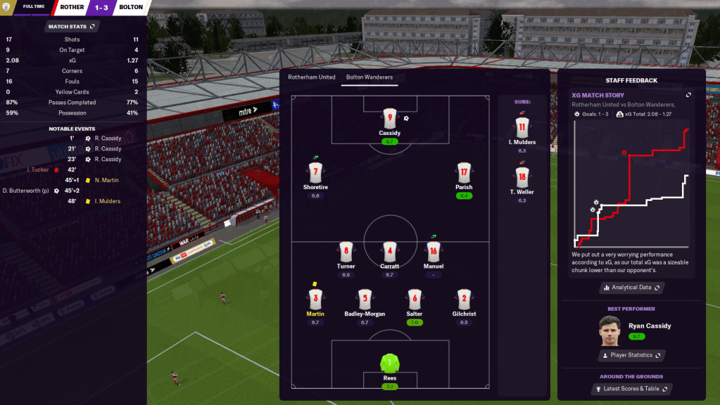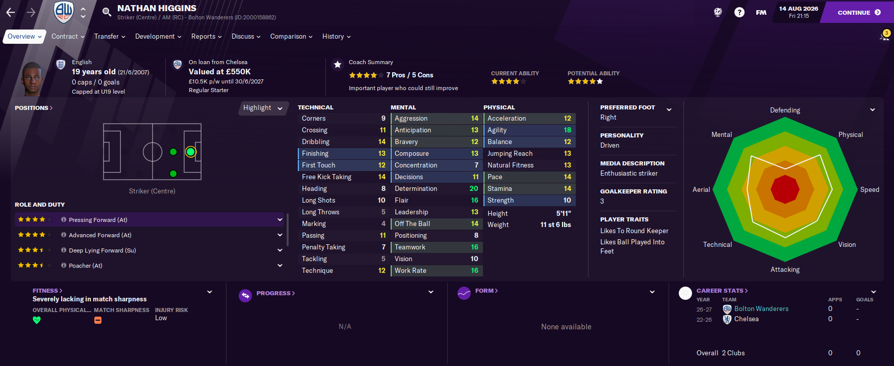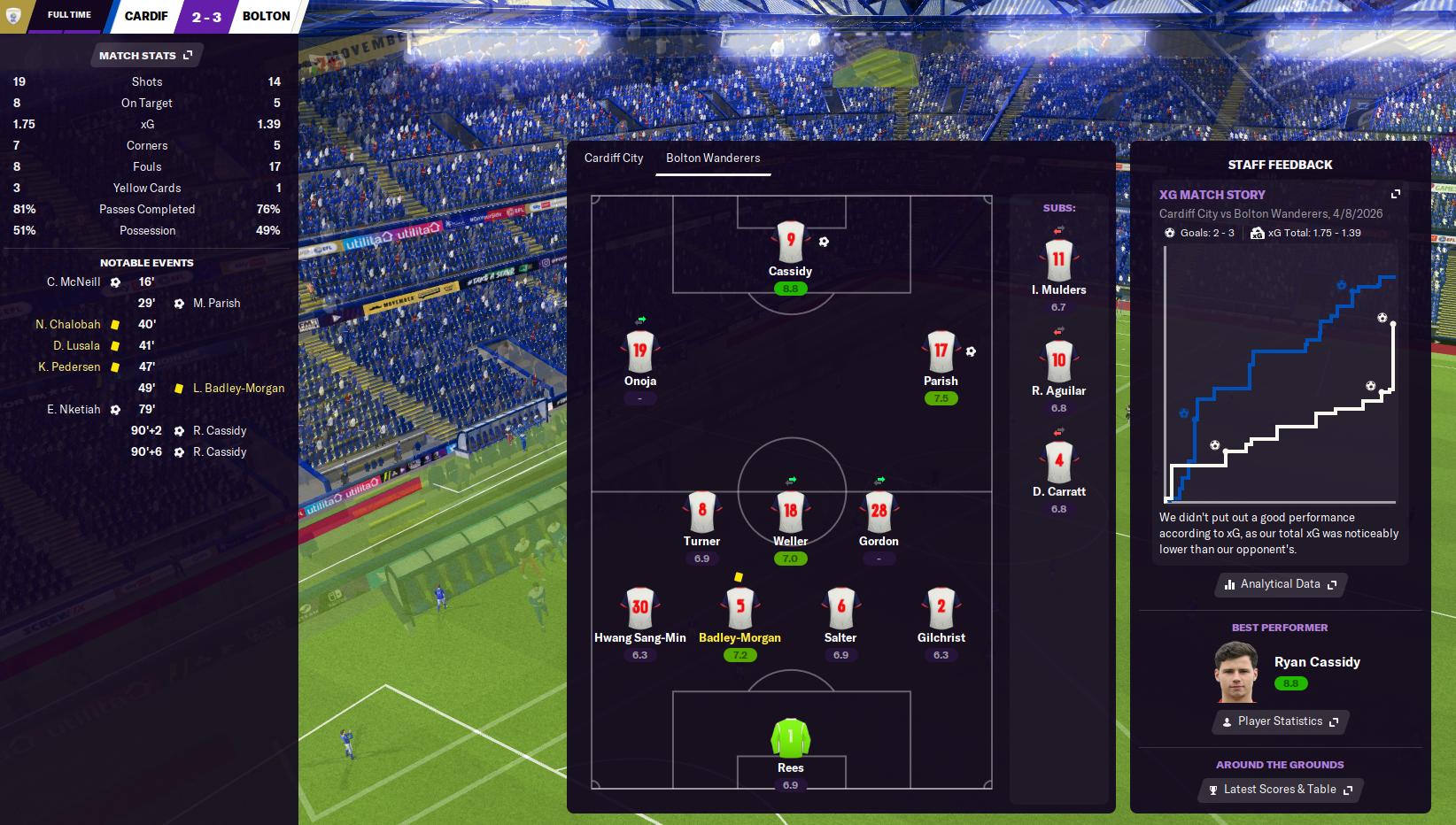 Our good form this season led to interviews and job offers from Southampton and Wolves, which I obviously would have taken if I wasn’t doing this as a Bolton save. But 2026 concluded with a good point at Sheffield Wednesday then a narrow 1-0 loss at Birmingham in which we created zilch.