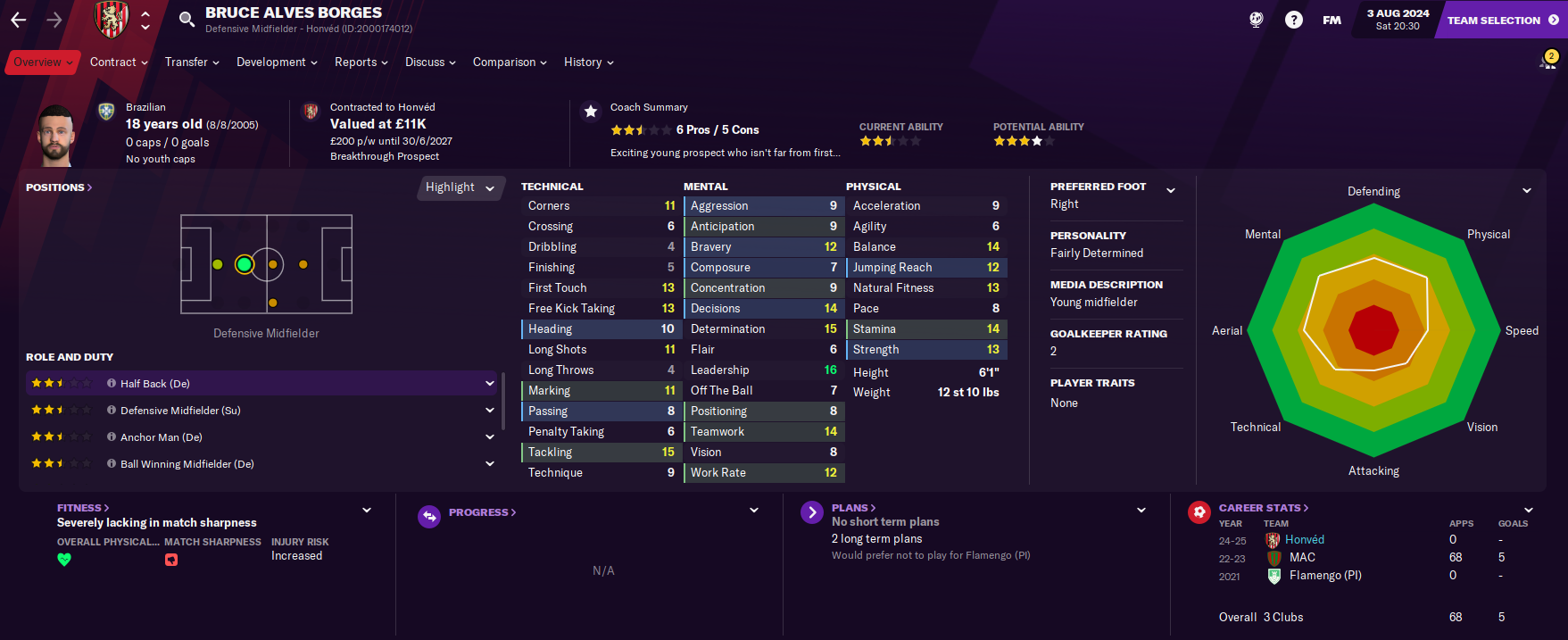 Latunov noticed a lack of wingers and that the team’s strength was very much through the middle of the park, so he ripped up his previous tactics and went with a 4-4-2 Diamond. And here’s how he’s looking at lining the side up, with the classic big man and small man combo of 6’4″ Honceriu and 5’9″ Sandro Luiz up front.