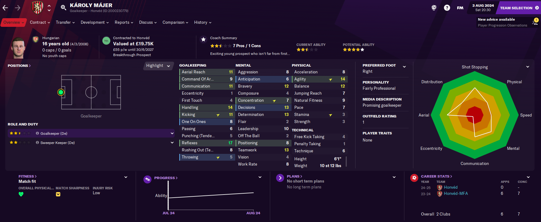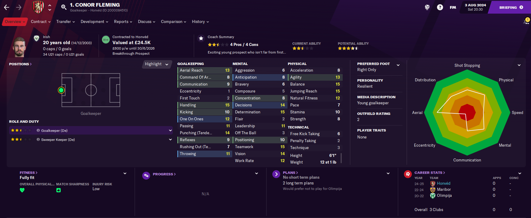 Latunov did a bit of wheeling and dealing to bring in a host of free transfers while his scouts assessed the riches of Africa and the Caribbean. He added a potentially exciting Brazilian striker in 19-year-old Sandro Luiz and some much needed midfield reinforcement from a former club in Zaglebie’s Dawid Pakulski and another Brazilian in the brilliantly named Bruce Alves Borges. Then another exciting strike option arrived in Slovak 18-year-old Adam Baran. Another player arrived as what was expected to be a backup goalkeeper in 20-year-old Irishman Conor Fleming, who it turned out was the best keeper at the club!