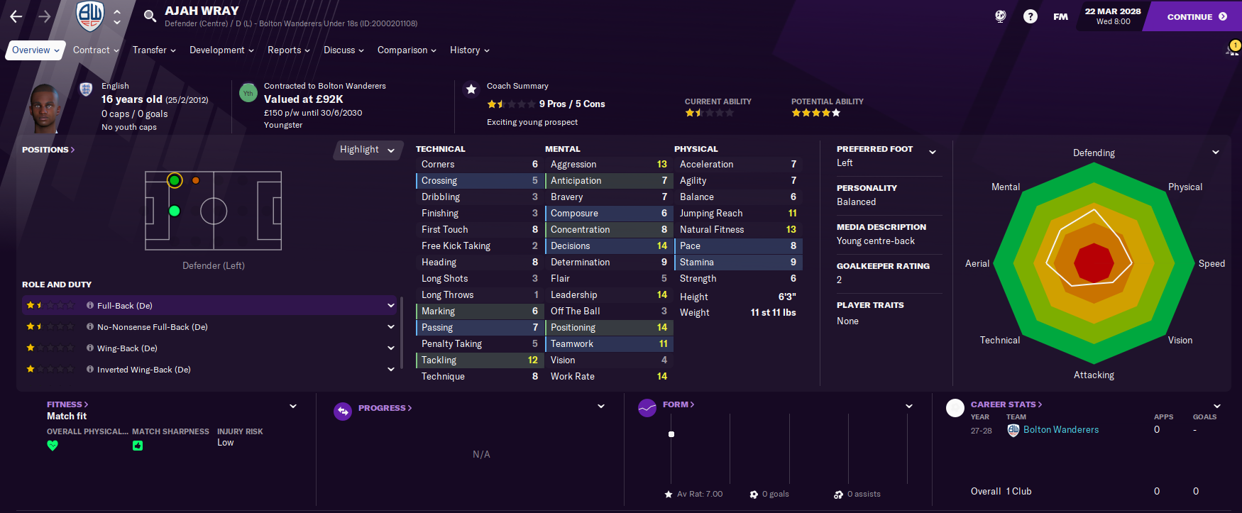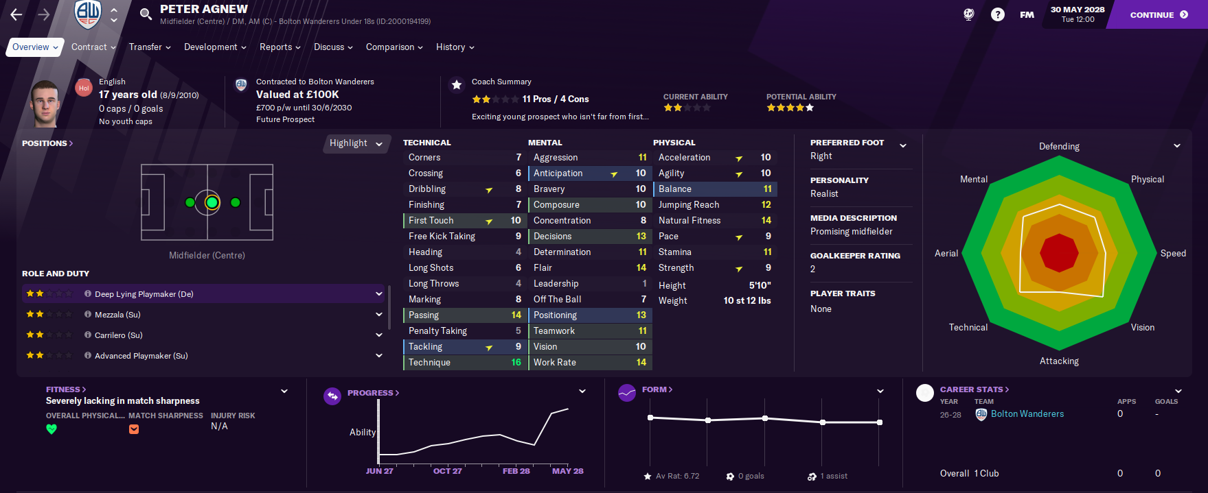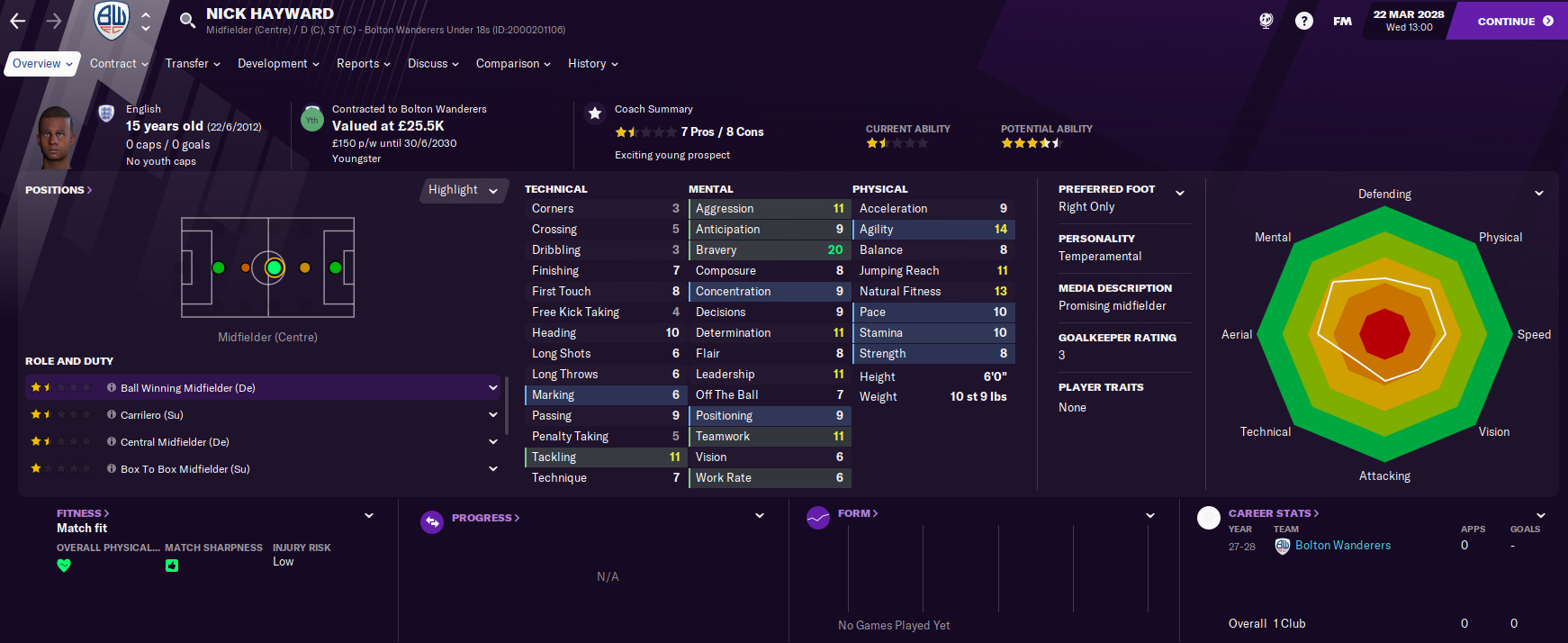 As the main theme of this post suggests, these are really exciting times in terms of youth player development. We now have 22 permanent players with at least 4.5-star potential, so I thought now would be a good time for a brief round-up of our key Bolton academy product talents.