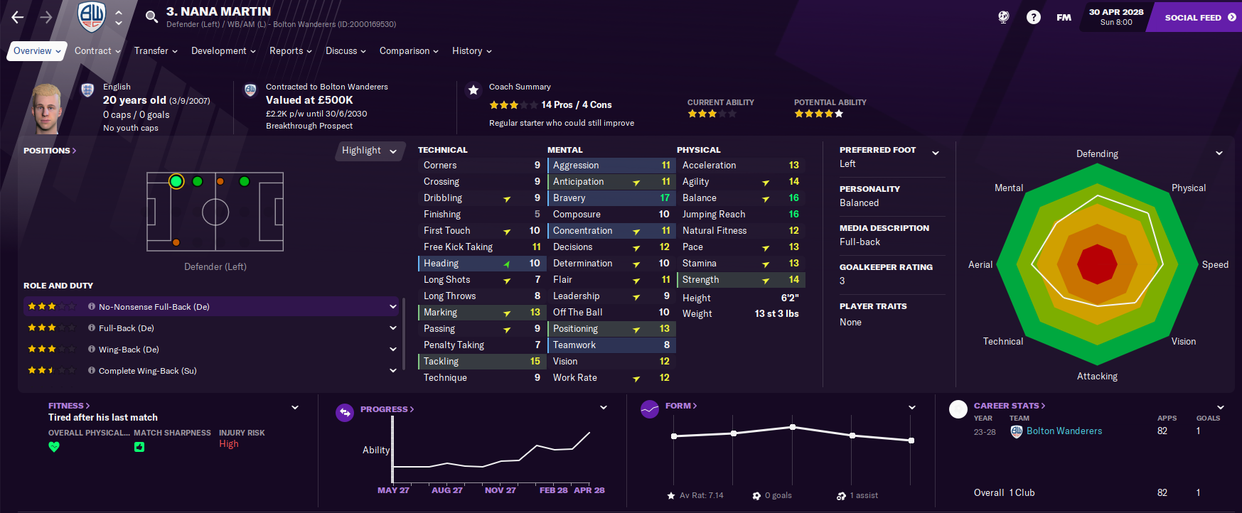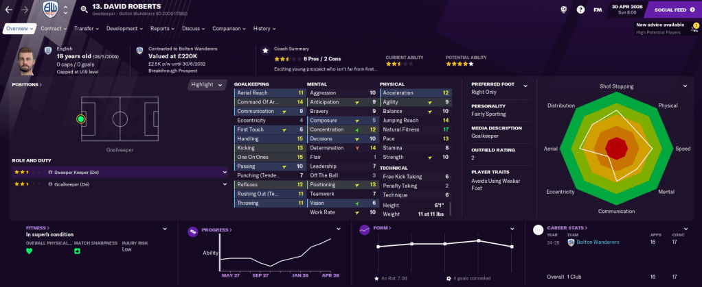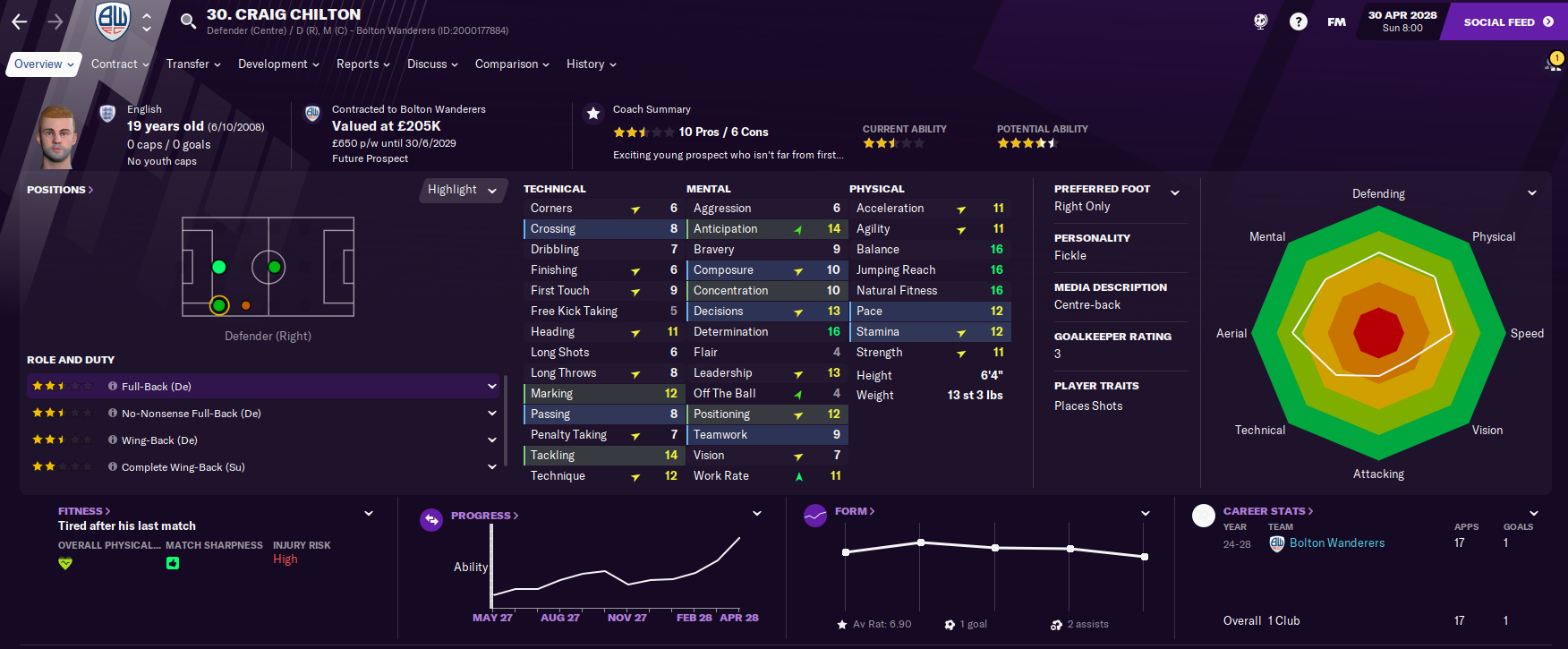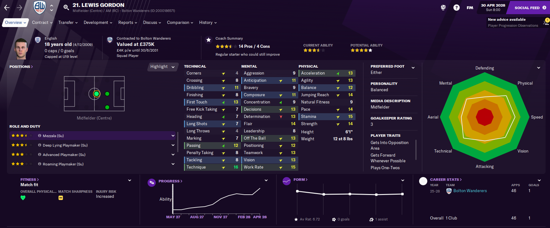 As the main theme of this post suggests, these are really exciting times in terms of youth player development. We now have 22 permanent players with at least 4.5-star potential, so I thought now would be a good time for a brief round-up of our key Bolton academy product talents.