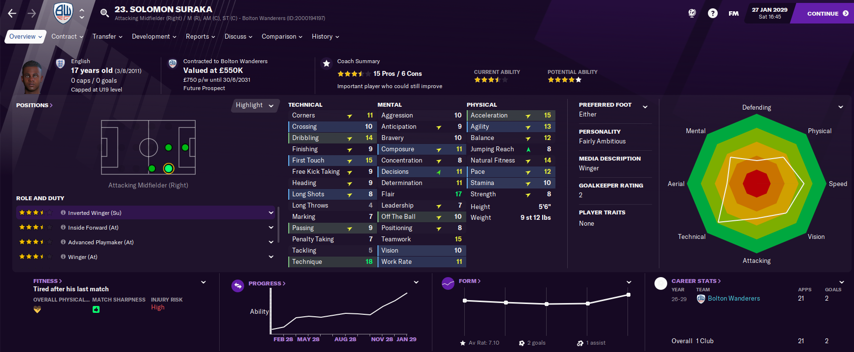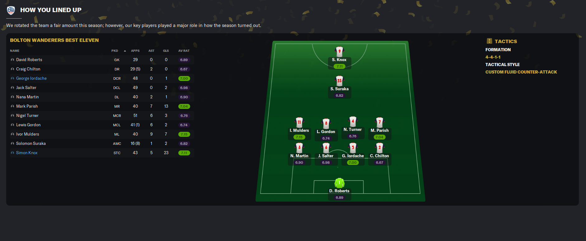 And the final game at the Reebok Stadium was, fittingly, against local rivals Blackburn. I went for the Trotters Talent approach and picked eight academy products in the starting eleven of: