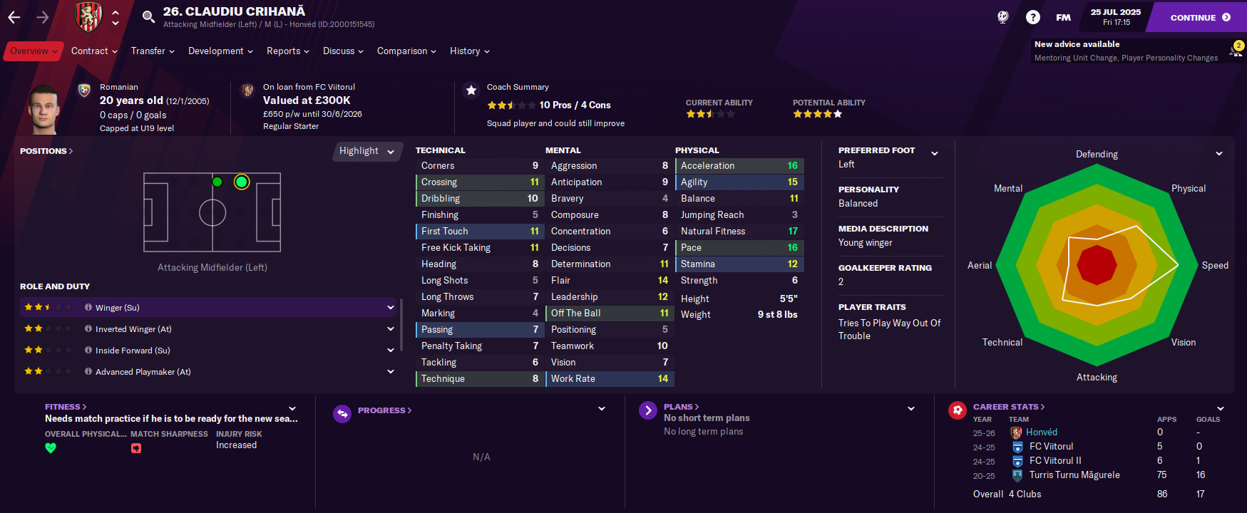 This form is well and truly down to the front two. Sandro Luiz has 18 goals at an average rating of 7.65 and Honceriu has 12 goals and 10 assists at an average rating of 7.79. Truly ridiculous! Honceriu’s form also won him the Romanian Player of the Year award, which is pretty impressive.