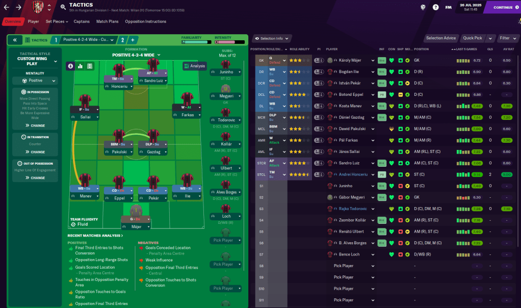 Latunov stuck with last year’s successful 4-4-2 setup with Sandro Luiz and Andrei Honceriu continuing to lead the line. And, despite finishing second last season, Honvéd were still predicted to finish seventh this season by the media.