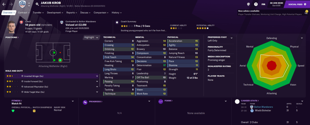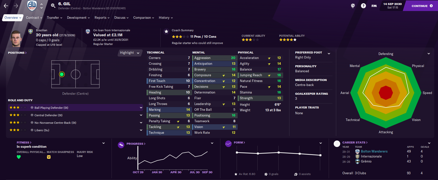 A second loss at the final hurdle of the Playoff Final condemned Bolton Wanderers to a ninth season in the SkyBet Championship in the 2030/31 season. This was my 11th season in charge of Bolton and I’m relatively confident we’ve slowly but surely built our strongest squad so far.
