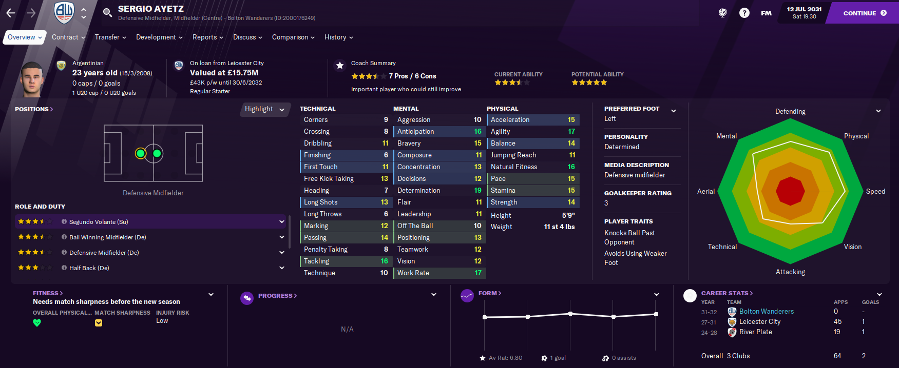 After nine years in the Championship and 11 years in charge of Bolton Wanderers, we’d led the club back to the Premier League as Champions in 2031. Now we had a huge task on our hands to strengthen the squad for a relegation battle.